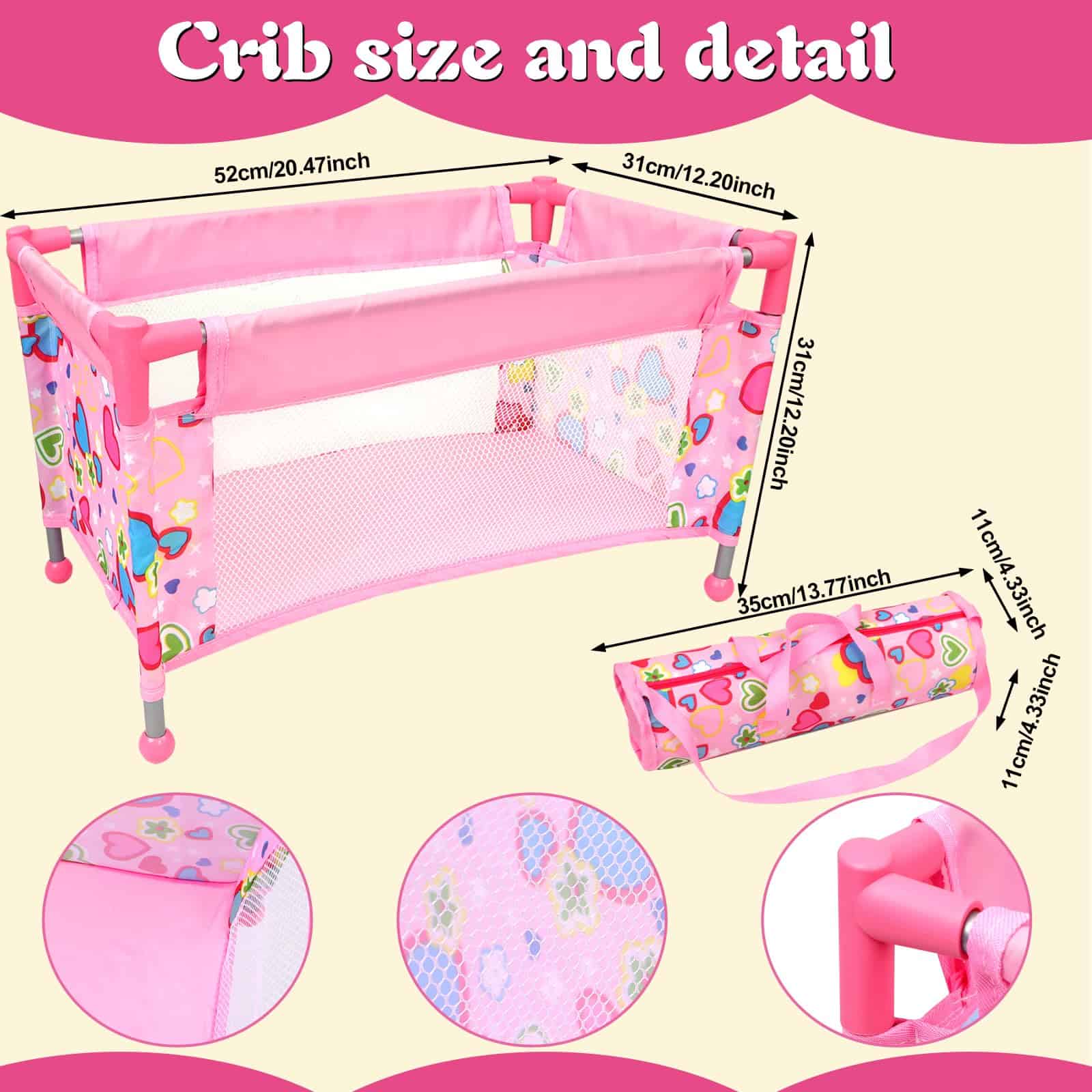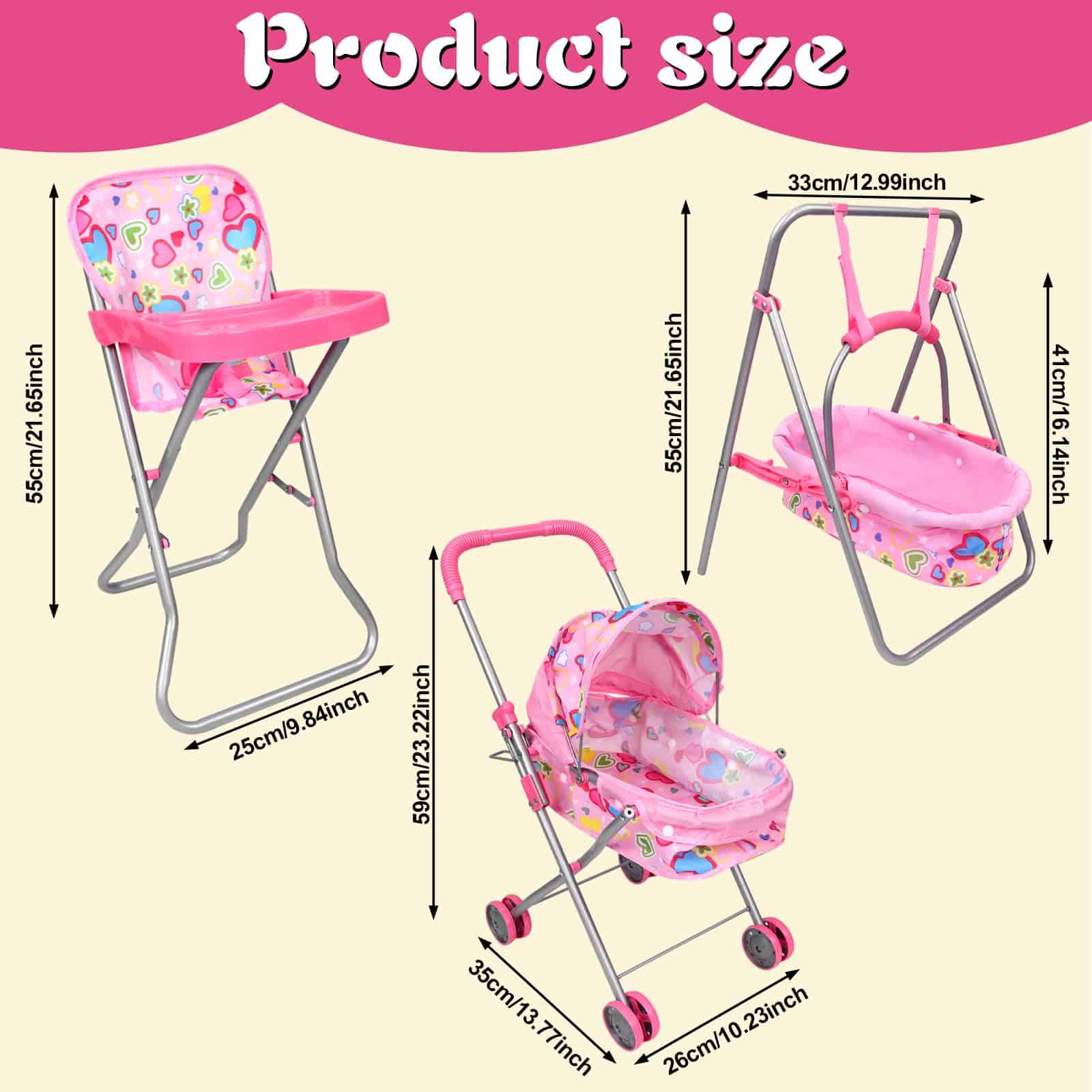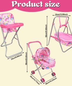 Estos accesorios de muñecas son fáciles de montar y almacenar, y los muebles de muñecas son seguros para que tu hijo los use. Son fáciles de plegar y guardar. La silla alta, cuna de muñecas y cochecito de muñecas son una excelente adición a cualquier colección de muebles de muñecas.