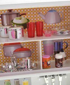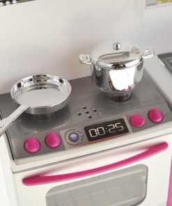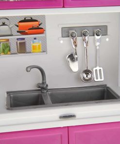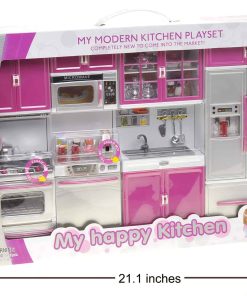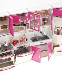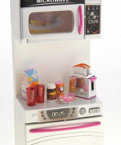 ¡Este moderno set de cocina viene con electrodomésticos que se iluminan y emiten sonidos como una cocina real! Los gabinetes, horno y refrigerador se pueden abrir. ¡La tostadora también tiene un interruptor que se puede presionar para imitar una tostadora real! Este set de juego es perfecto para que los niños jueguen a fingir en una mini cocina!