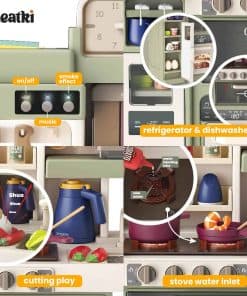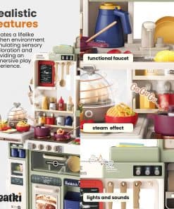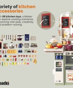 Este set de cocina Neatki de 88 piezas para niños es perfecto para los pequeños chefs en casa. Con un diseño realista y características educativas, esta cocina de juguete ofrece diversión interactiva y creativa para niños de 3 años en adelante. La presencia de un grifo funcional permite que los niños experimenten la emoción de lavar platos, mientras que los efectos de vapor realistas añaden un toque de autenticidad a la experiencia de cocinar de mentira. Además, las luces y sonidos interactivos crean un ambiente cautivador que sumerge a los niños en un mundo de exploración culinaria y descubrimiento. La pizarra incorporada fomenta la planificación de menús y la expresión creativa, mientras que la variedad de accesorios de cocina, como ollas, sartenes, utensilios y comida de juego, proporciona infinitas oportunidades para el juego imaginativo y el aprendizaje. ¡Deja que tus pequeños chefs desplieguen su creatividad en esta cocina de juguete de Neatki!