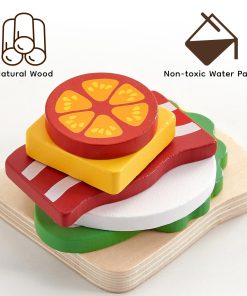 Set de tostadora de juguete de madera para que los niños actúen todo el proceso de tostar pan para el desayuno y combinen el desayuno con juguetes de verduras, huevo y leche para mejorar las habilidades cognitivas y la coordinación mano-ojo.
