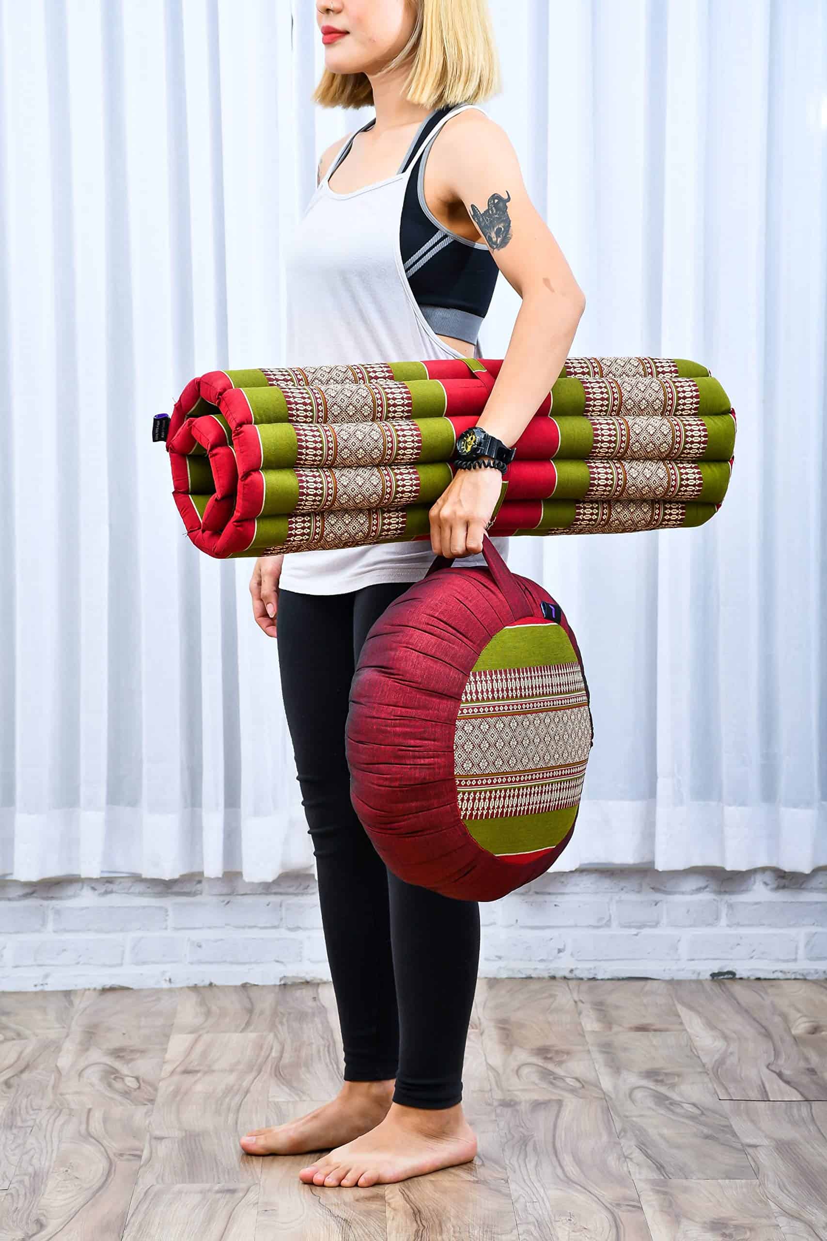 Set de Cojín de Meditación Leewadee – 1 Cojín -Rojo, Verde