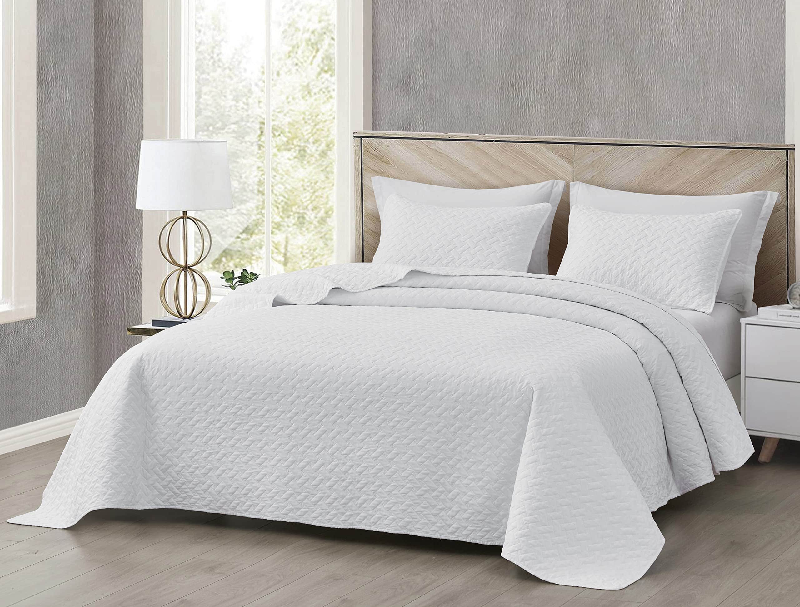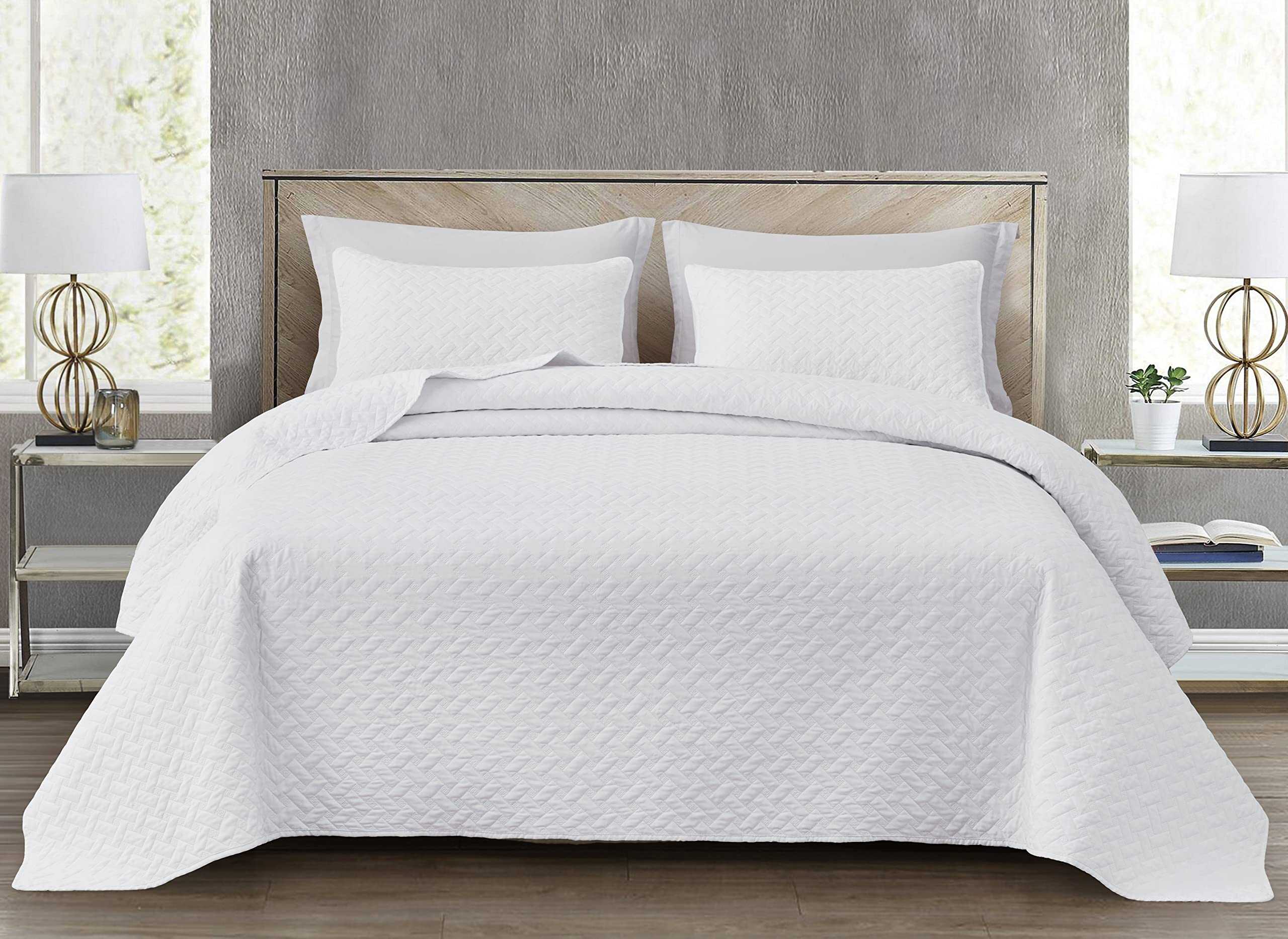 Un lujoso y elegante set de colcha en un estilo clásico hecho con un hermoso y llamativo diseño acolchado de cestería. Cuidadosamente elaborado y diseñado con una construcción de costuras multicapa para crear una colcha ligera y súper suave para uso durante todo el año. Esta colcha moderna inspirada podría utilizarse sola, como la pieza perfecta para superponer, o como un acento decorativo para la decoración de su dormitorio.