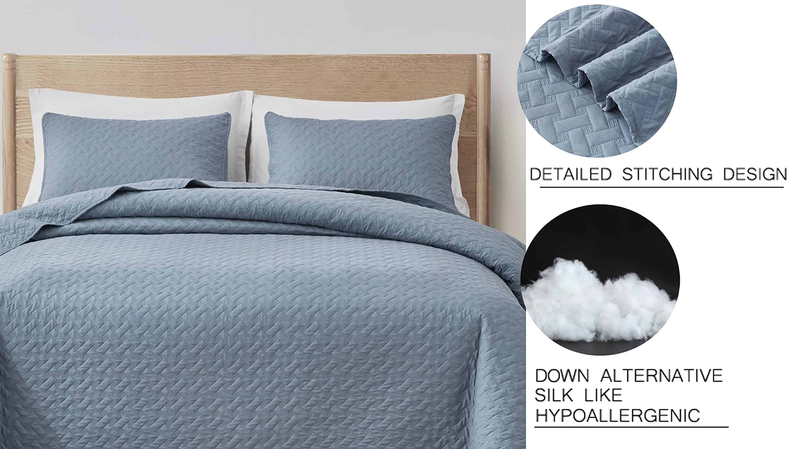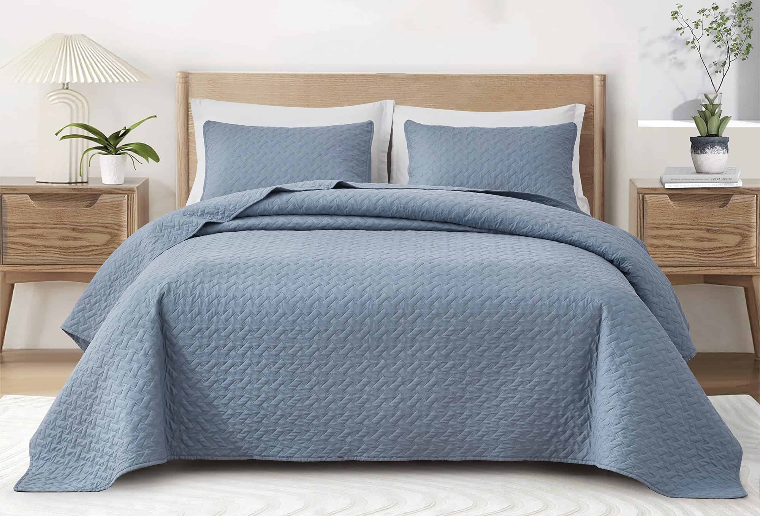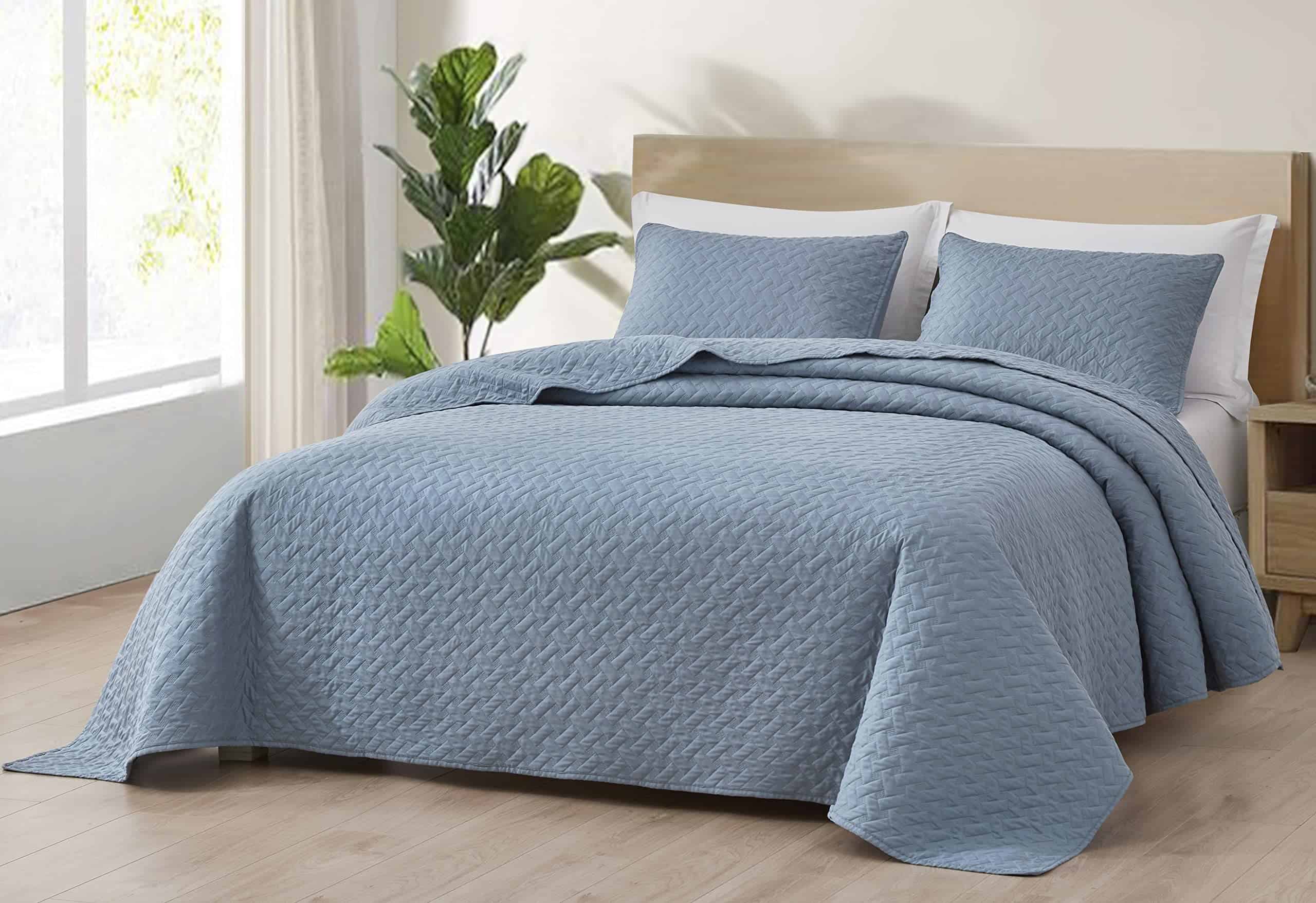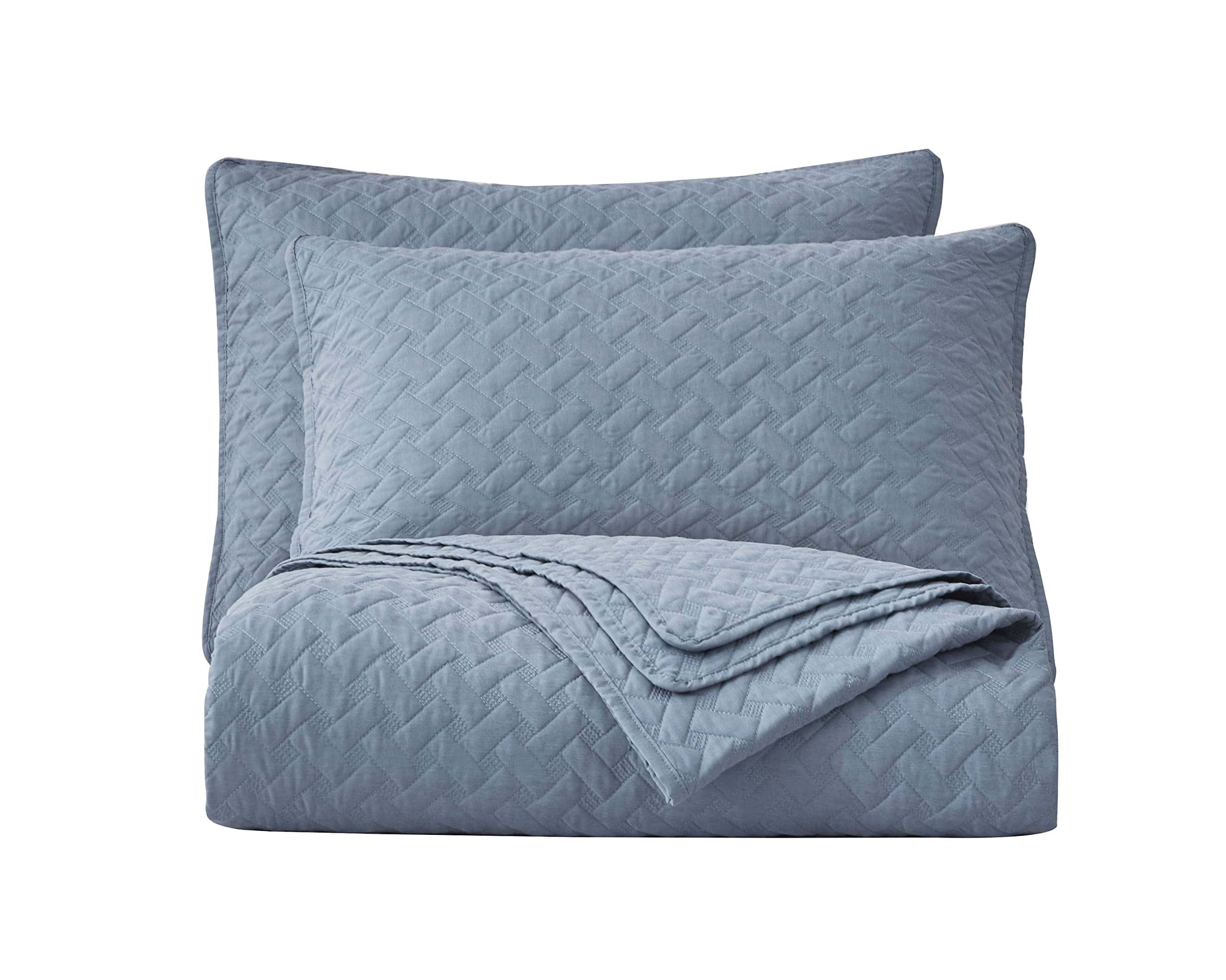 Set de colcha cobertor lujoso y elegante en un estilo clásico con un hermoso y llamativo patrón de tejido en cesta. Cuidadosamente elaborado y diseñado con una construcción de costuras multicapa para crear una colcha cobertor ligera y súper suave para uso durante todo el año. Esta colcha de inspiración moderna podría utilizarse sola, como una capa perfecta, o como un acento decorativo para la decoración de tu dormitorio.