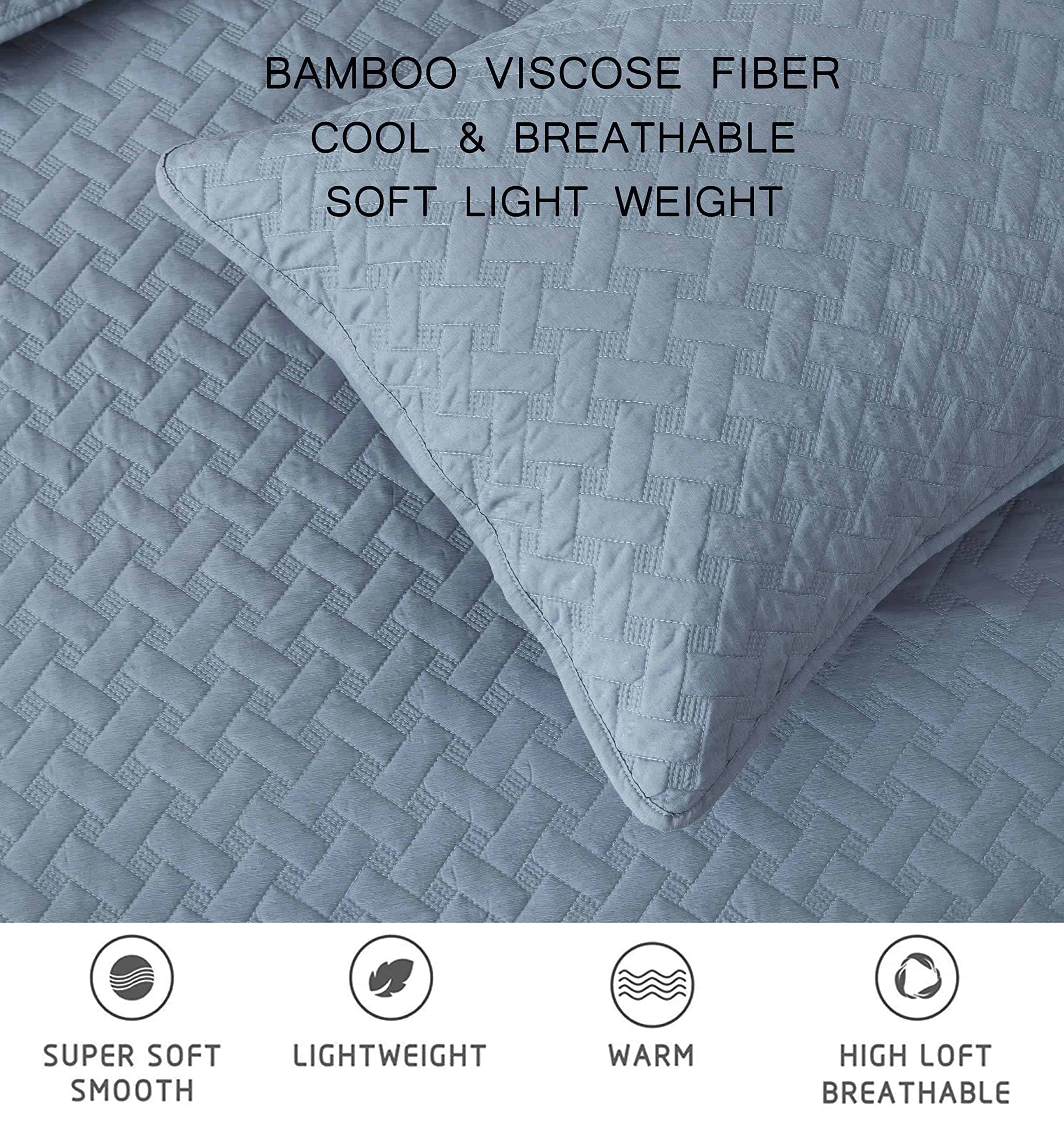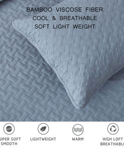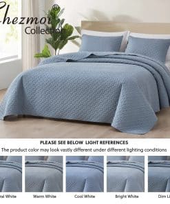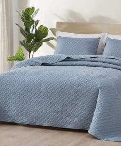 1. Incluye Set de Colcha Cobertor de 3 Piezas Randall: 1 Colcha, 2 Fundas de Almohada. 2. Medidas Tamaño Queen: Colcha 92″ x 96″, Fundas de Almohada 20″ x 26″. 3. Presenta un hermoso y ordenado patrón de tejido en cesta. Un estilo clásico atemporal con un toque elegante para realzar tu espacio manteniendo un ambiente informal. 4. Hecho con una mezcla de 65% Bambú y 35% Poliéster para un colcha super suave y transpirable, ligera y versátil. 5. Fácil Cuidado – Lavar a máquina en ciclo suave con agua fría. No usar blanqueador. Para secar, usar secado suave en secadora o secar al sol o al aire