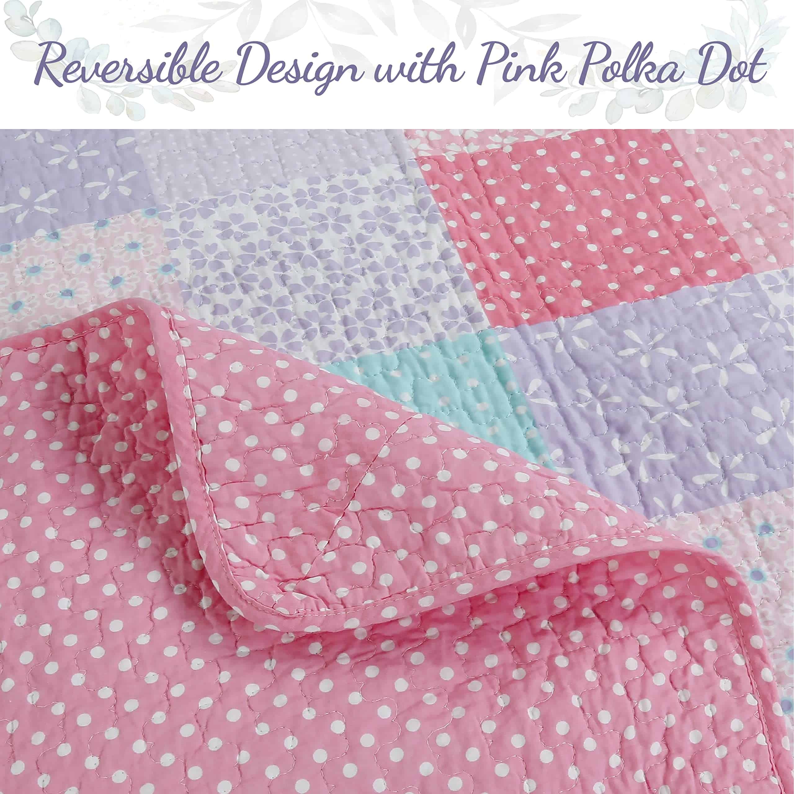 Set de Colcha con Estampado Floral Puntos Rosa Morado Azul