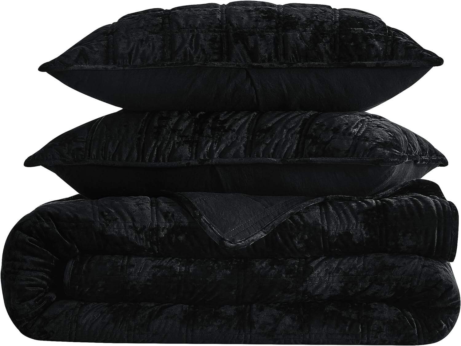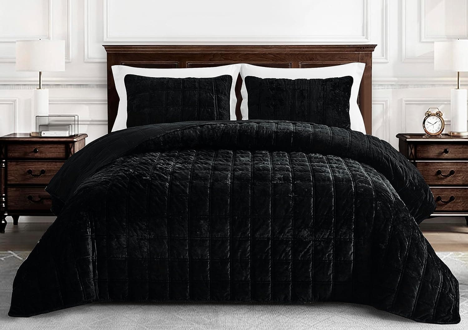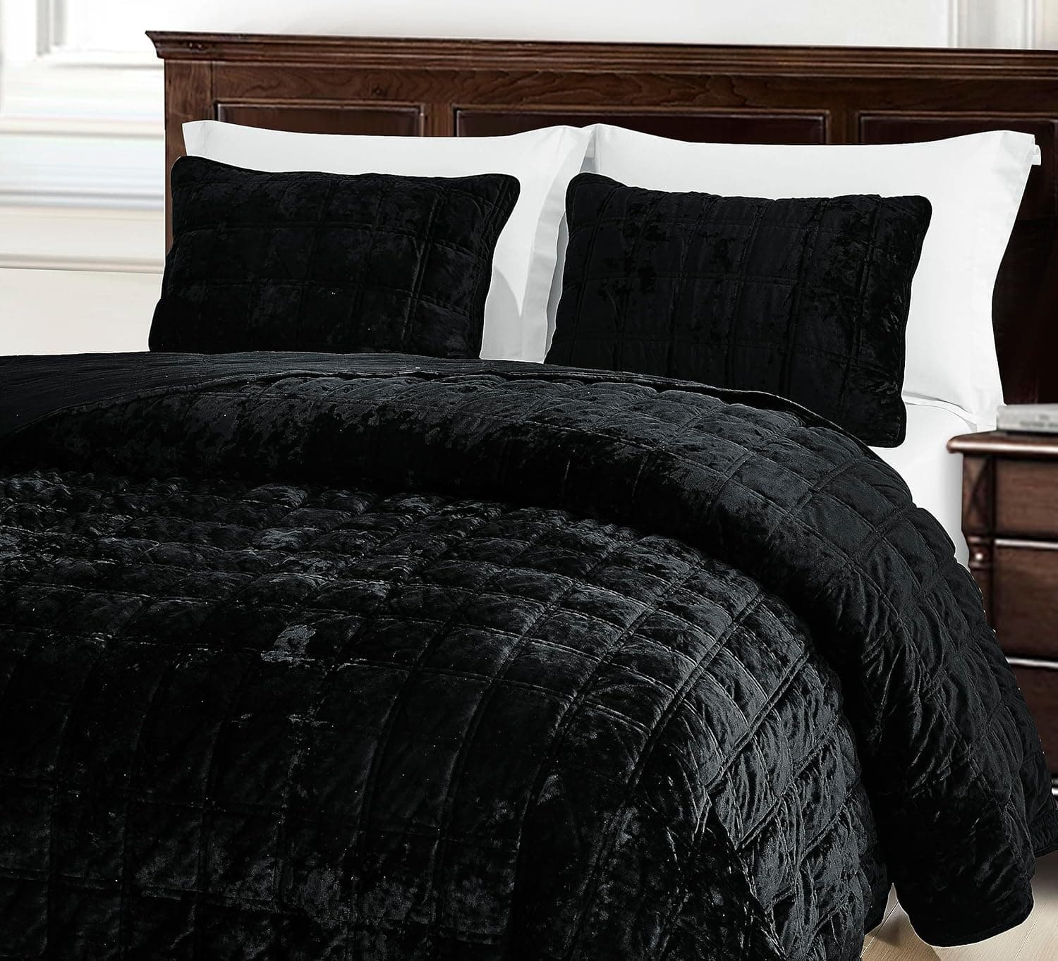 Set de Colcha de Terciopelo Negro Chezmoi Collection Piers