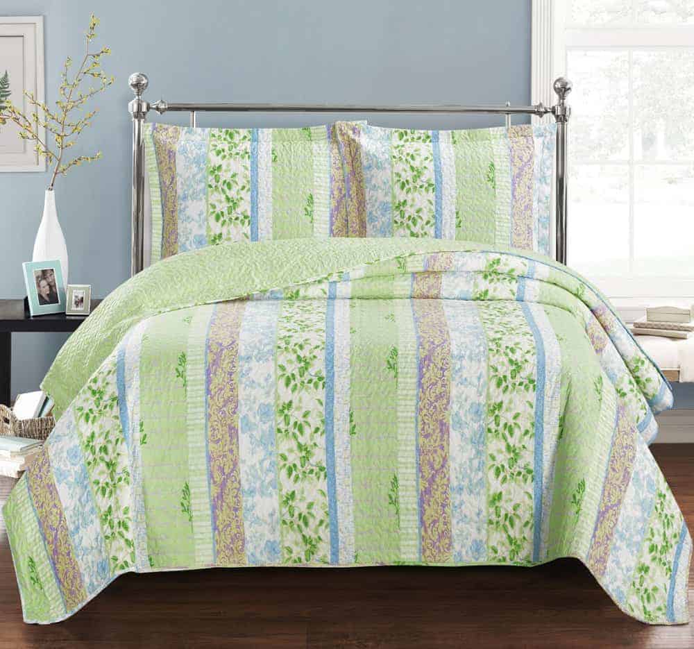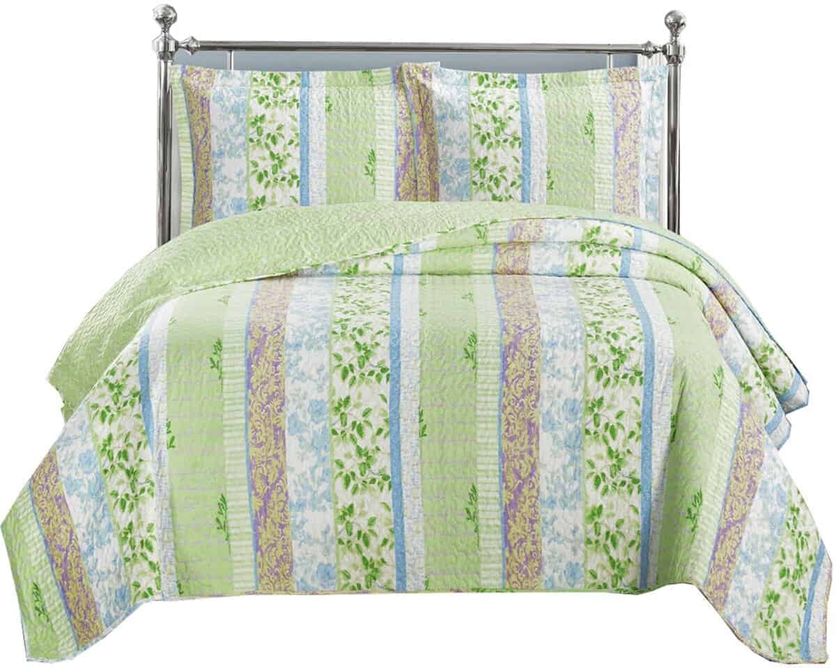 El conjunto de ropa de cama Royal Hotel Bedding Hayley es perfecto para los amantes de la naturaleza. La colcha presenta tonos de verde, azul y blanco que decoran la colcha en diversos tamaños, mostrando múltiples diseños florales. Con un tamaño extragrande de 92 x 96 pulgadas, esta colcha de lujo se adapta a los colchones más profundos de hoy en día y está tejida con fibras de larga duración para proporcionar años de comodidad. Hecho de un tejido ligero para todas las estaciones, con una cubierta de microfibra y un relleno de 50% algodón y 50% poliéster, esta colcha ofrece comodidad y calidez durante todo el año sin la sensación pesada y áspera. Además, es lavable a máquina para un cuidado fácil. ¡Eleva tu dormitorio con este exquisito conjunto de colcha y disfruta de la comodidad y estilo que ofrece!