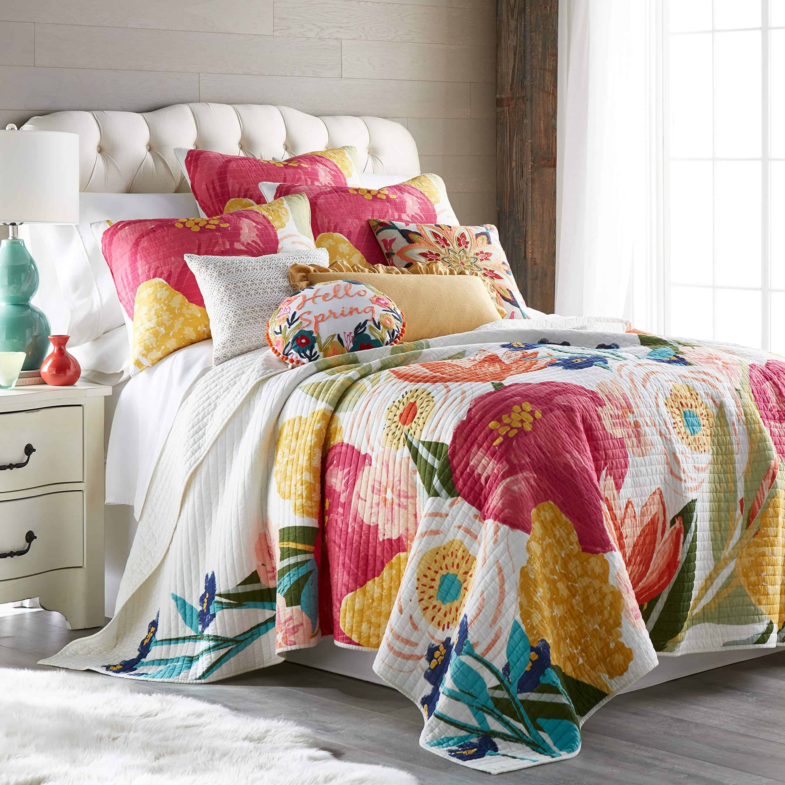SET DE CAMA DE COLCHA LEVTEX GRANDIFLORA: Un juego de ropa de cama floral, brillante, audaz, sofisticado y divertido que consta de una colcha de tamaño Full/Queen (88×92 pulg.) y dos fundas de almohada a juego (26×20 pulg.). Utilizado por sí mismo, como una pieza de capas o como una cubrecama, este juego de ropa de cama es extremadamente versátil.