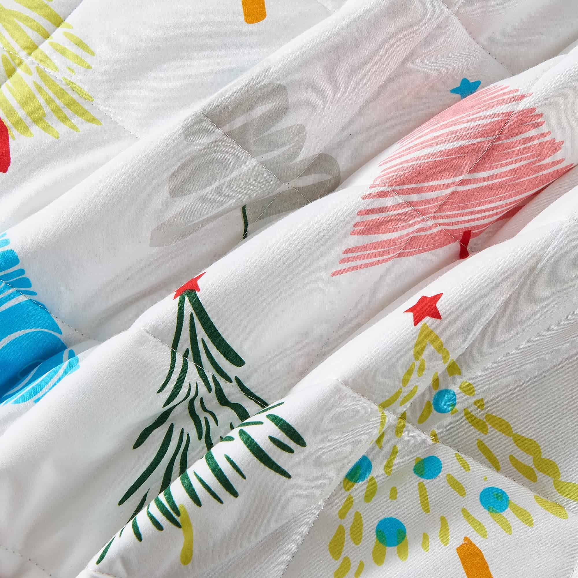 2. Calidez ligera: Con un estilo festivo de Navidad y una calidez ligera, este set se puede utilizar como un acento decorativo en tu cama. Combínalo con otras prendas de cama para un aspecto acogedor de invierno, o úsalo solo como manta, de cualquier manera te verás y te sentirás cómodo.
