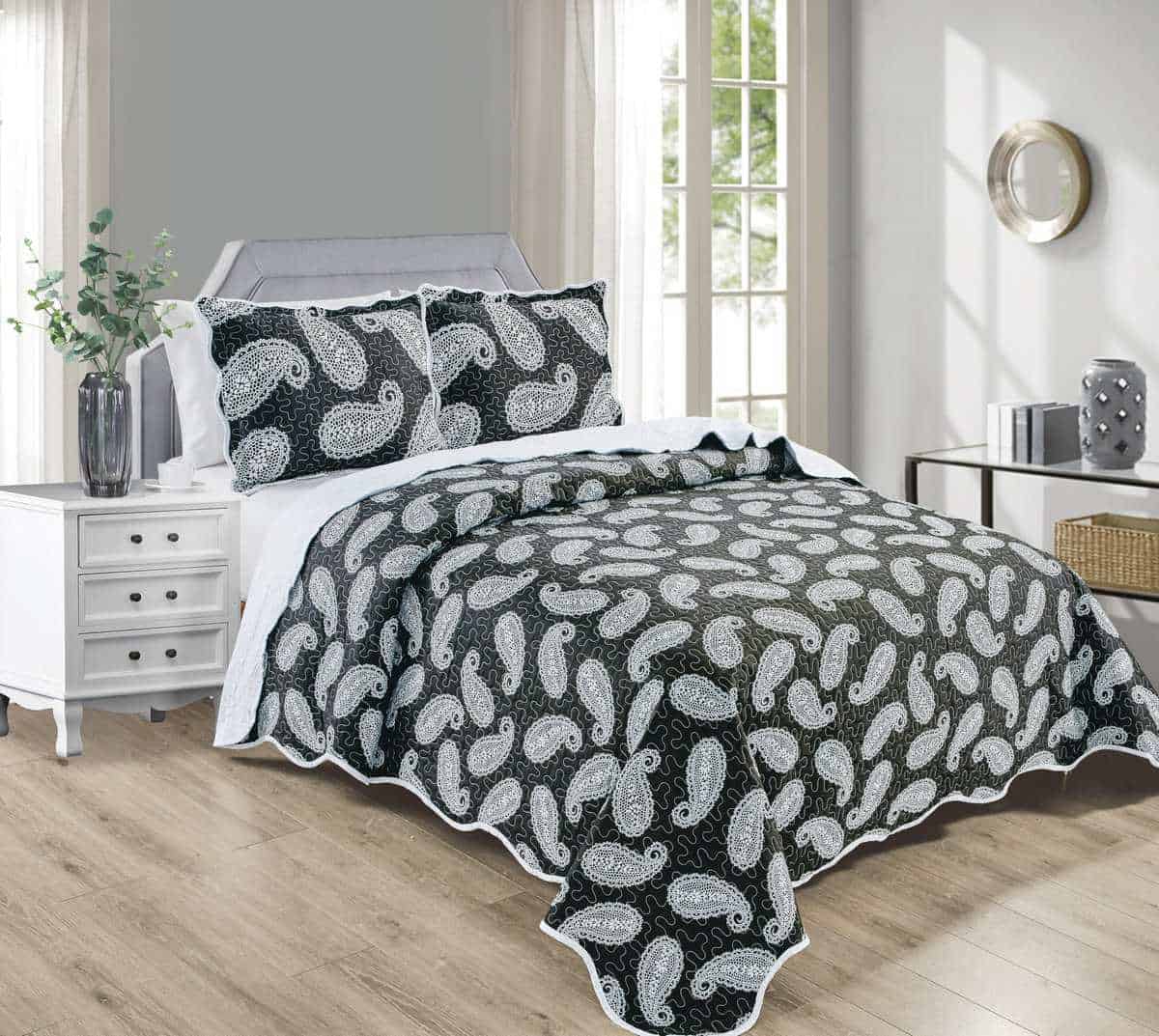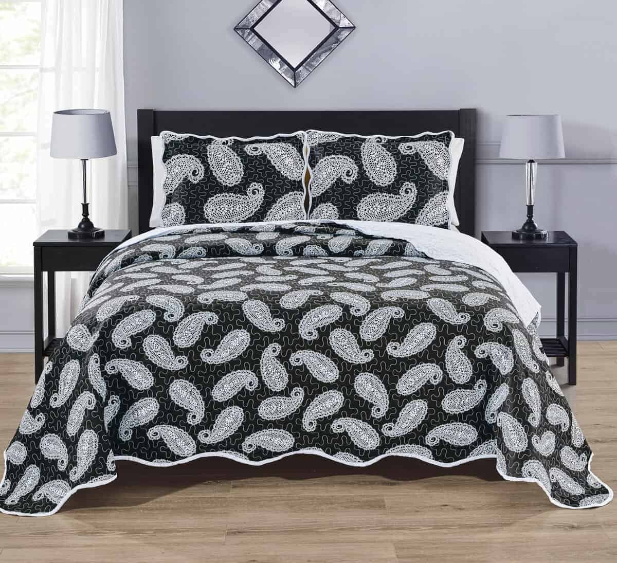 Realza la decoración de tu dormitorio con esta lujosa colcha extragrande en diseño Negro, Blanco, Paisley, perfecta para aquellos que desean mejorar su colección de ropa de cama con estilo y comodidad. Fabricada con microfibra premium, ultrablanda, esta colcha ligera pero duradera es ideal para uso durante todo el año, proporcionando el equilibrio perfecto de calidez y transpirabilidad para mantenerte fresco en verano y acogedor en invierno. Estos diseños extragrandes ofrecen una generosa cobertura y están disponibles en camas de tamaño Twin, Full Queen, King, y California King, ofreciendo un aspecto mullido, elegante y ajustado que complementa maravillosamente cualquier estilo, desde moderno, rústico, vintage, y cottage a costero, minimalista y clásico. Perfecta para una variedad de espacios incluyendo dormitorios principales, habitaciones de invitados, dormitorios de niños y alquileres vacacionales, este versátil cobertor se puede usar como colcha, manta, edredón alternativo o manta decorativa según tus necesidades. Está diseñada para la conveniencia y durabilidad, siendo lavable a máquina, resistente a la decoloración, sin arrugas y de secado rápido, lo que la hace ideal para hogares concurridos, hogares aptos para mascotas y familias. Esta colcha multiusos de alta calidad añade un toque suave, acogedor e invitante a cualquier habitación, convirtiéndola en una excelente elección para los entusiastas de la ropa de cama de lujo o para aquellos que buscan artículos de ropa de cama suave, cómodos y hermosos. Perfecta como regalo de inauguración, regalo de boda, regalo de cumpleaños o regalo de vacaciones para amigos y familiares, esta elegante y sofisticada colcha combina elegancia, practicidad y diseño atemporal, asegurando que se convierta en una parte querida de tu hogar durante años