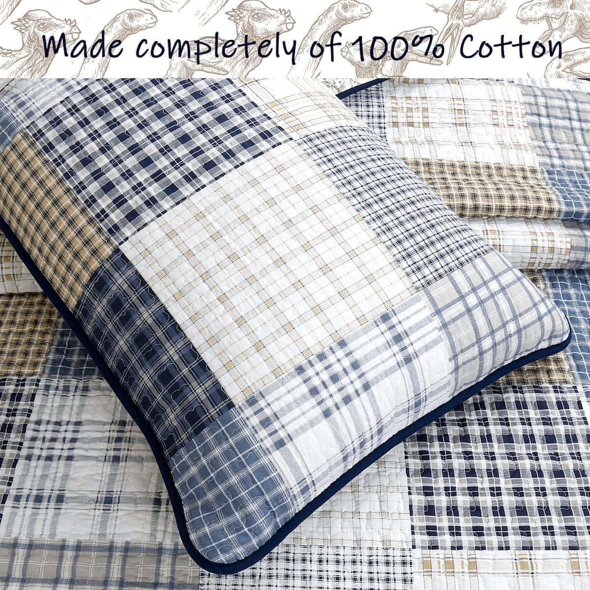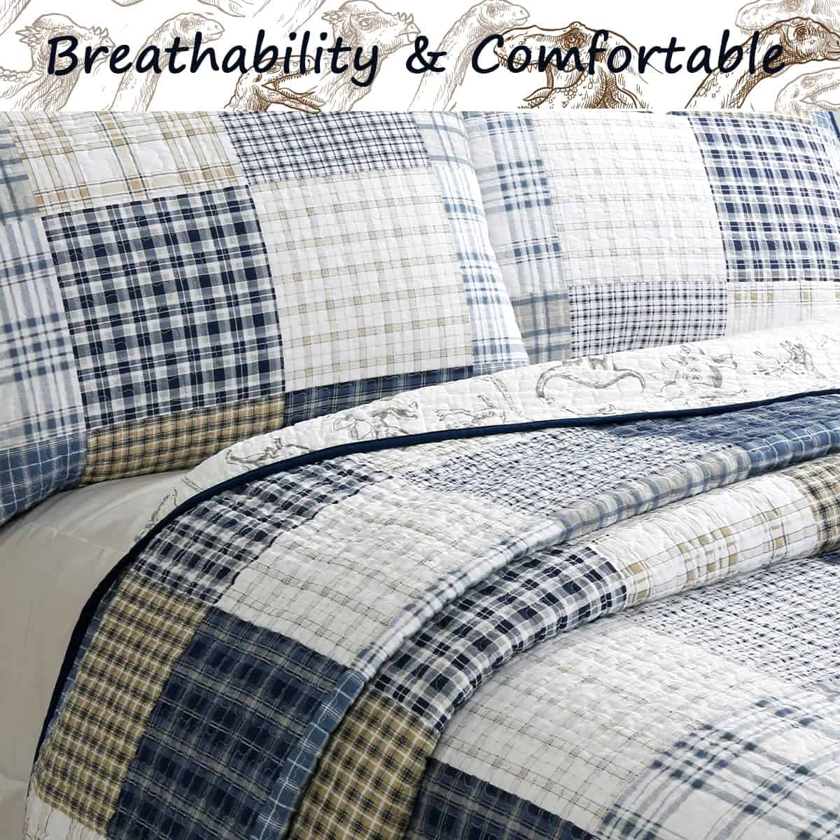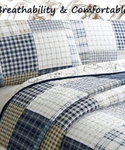 Tamaño de la Reina – Juego de 3 piezas que incluye 1 colcha (88 pulgadas de ancho x 92 pulgadas de largo), 2 fundas de almohada estándar (20 pulgadas de ancho x 26 pulgadas de largo). Material de alta calidad con tejido exterior 100% algodón y relleno de algodón suave que ofrece transpirabilidad y una sensación de lujo.