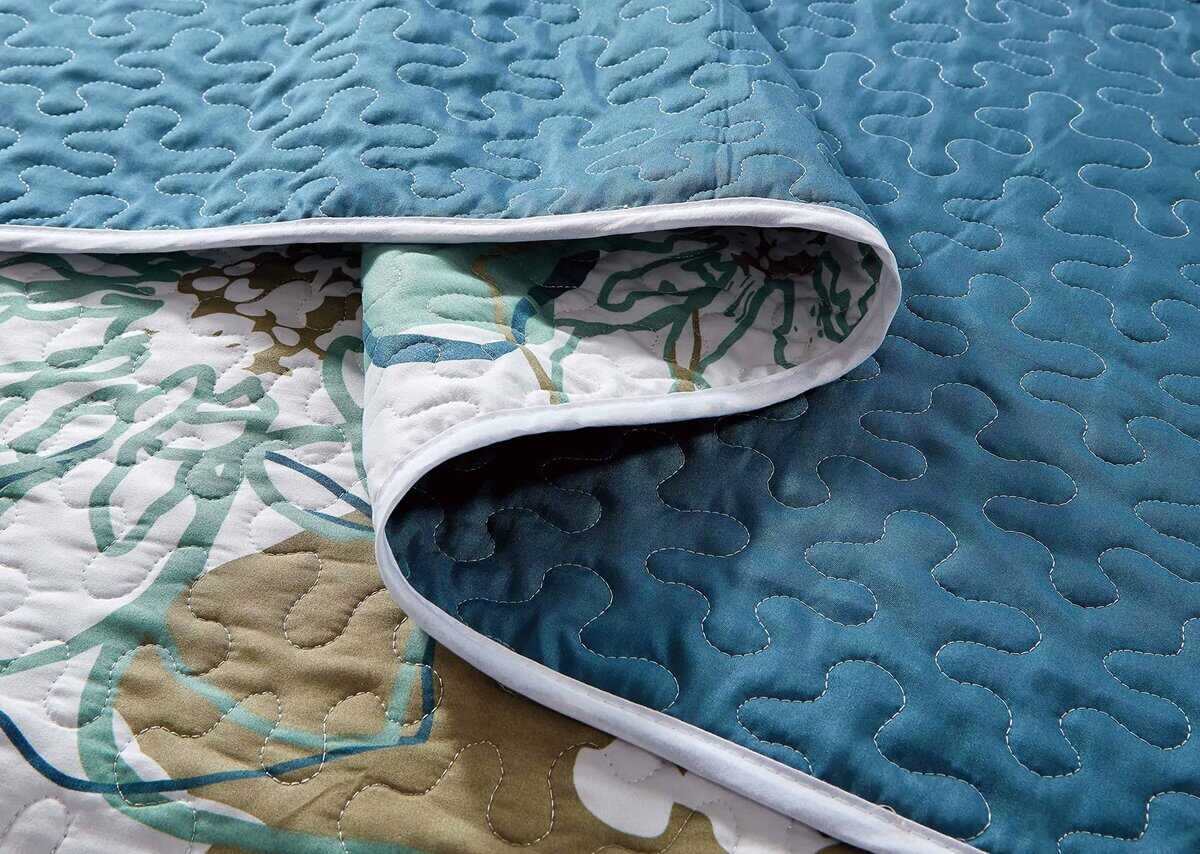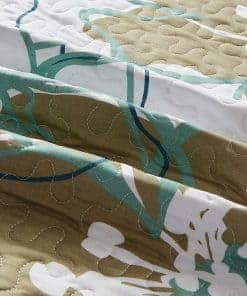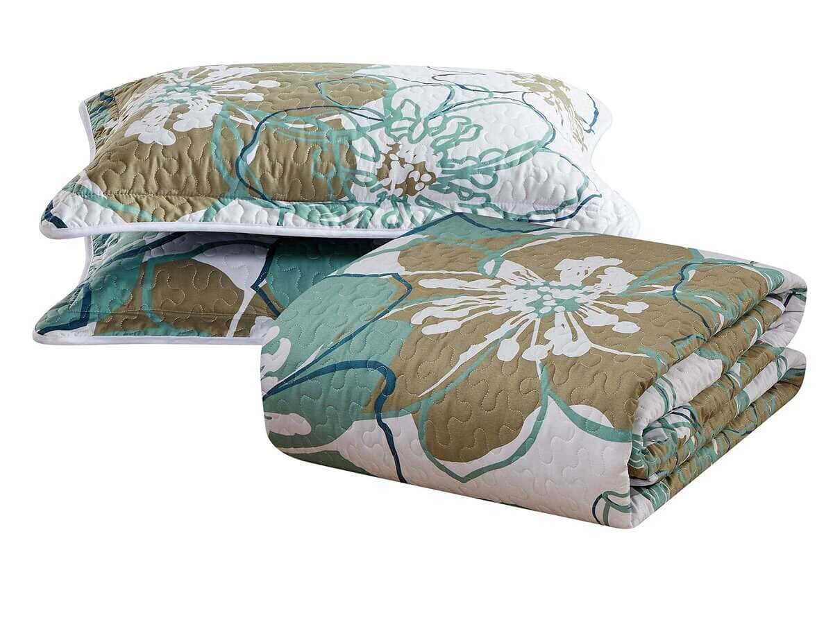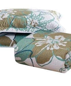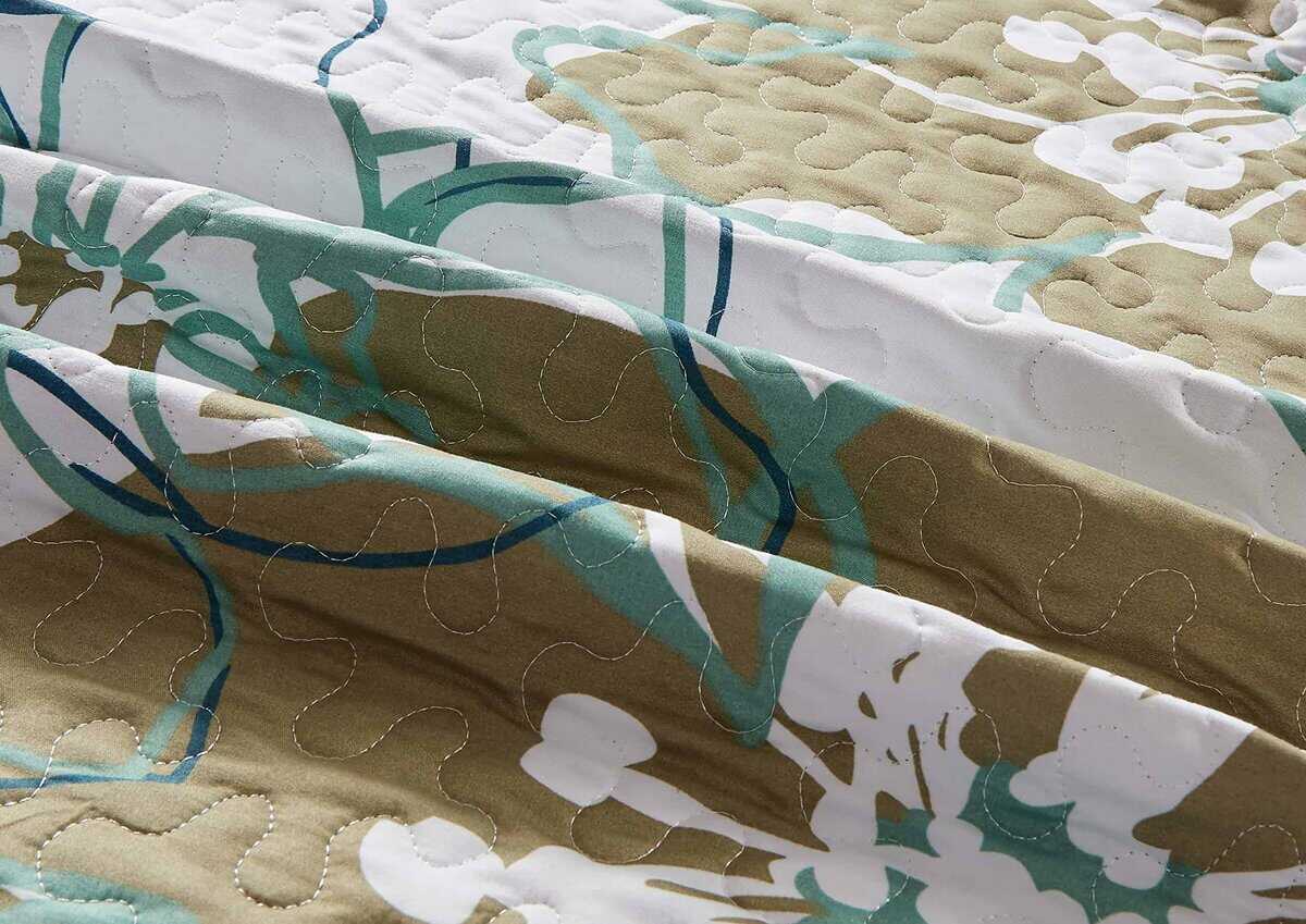 Set de Colcha y Cubrecama de Lujo para Cama King/California King con estampado de flores verdes en el lateral. Incluye: 1 Colcha extra grande (108″ x 95″) y 2 fundas de almohada (20″ x 36″). Confeccionado en 100% Microfibra. Lavar a máquina en ciclo suave, secar en ciclo bajo.