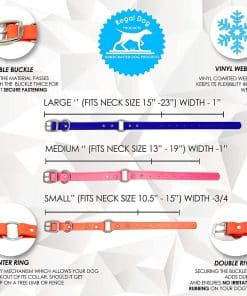 ¡No busque más el collar perfecto para su ser querido peludo! Nuestros collares vienen en 8 colores y son ajustables para casi cualquier tamaño de perro. – 15″ (se adapta a cuellos de 13 pulgadas a 17 pulgadas) – 17″ (se adapta a cuellos de 15 pulgadas a 19 pulgadas) – 19″ (se adapta a cuellos de 17 pulgadas a 21 pulgadas) – 21″ (se adapta a cuellos de 19 pulgadas a 23 pulgadas) – 23″ (se adapta a cuellos de 21 pulgadas a 25 pulgadas) ¿Está cansado de collares malolientes y desgastados y de tener que reemplazarlos a menudo ¡Estos son su solución! Nuestros collares están hechos de un material sintético que tiene la apariencia y el tacto del cuero, pero prácticamente no requiere mantenimiento. El material es virtualmente indestructible y, como es completamente impermeable, no absorbe suciedad ni bacterias, manteniéndolos sin olores. Como todos nuestros collares están hechos en EE. UU., puede sentirse seguro de que obtendrá un collar de alta calidad que le durará a usted y a su ser querido peludo durante muchos años. ¿A qué está esperando Haga clic en «Añadir al carrito» hoy!