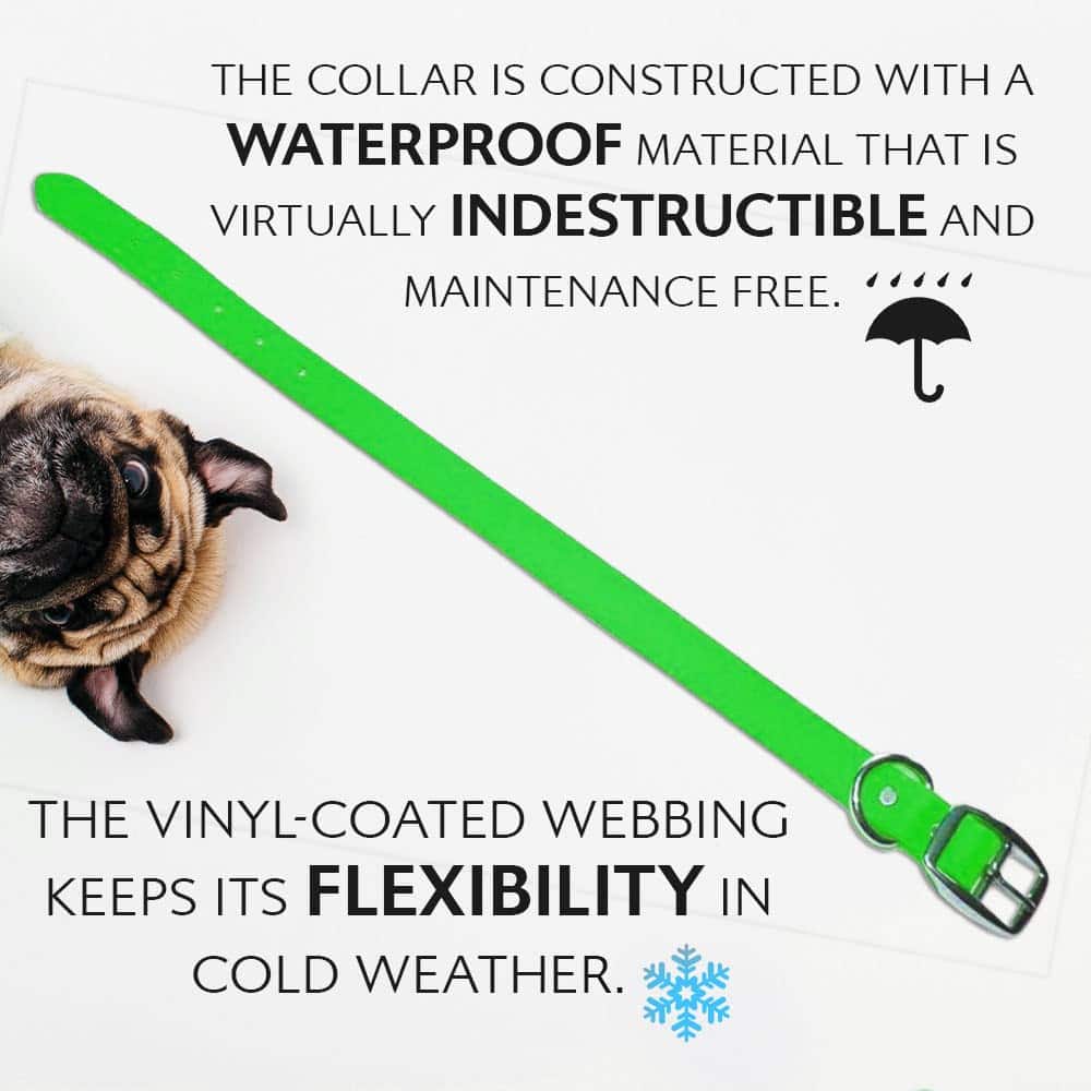 3. COMPLETAMENTE IMPERMEABLE: ¿A tu cachorro le encanta la playa Este es el collar para perros perfecto para ti! El recubrimiento de vinilo es más duradero que el caucho, nylon, silicona, collares delgados o plástico y nunca absorberá humedad, suciedad. Estos collares impermeables para perros son resistentes, lo cual es ideal para perros acuáticos o perros de caza. ¡El collar repele la suciedad y no atrapa ningún pelo, por lo que se mantiene seco y limpio! ¡Perfecto como collar de perro de caza o collar de entrenamiento para tu Amigo Peludo!