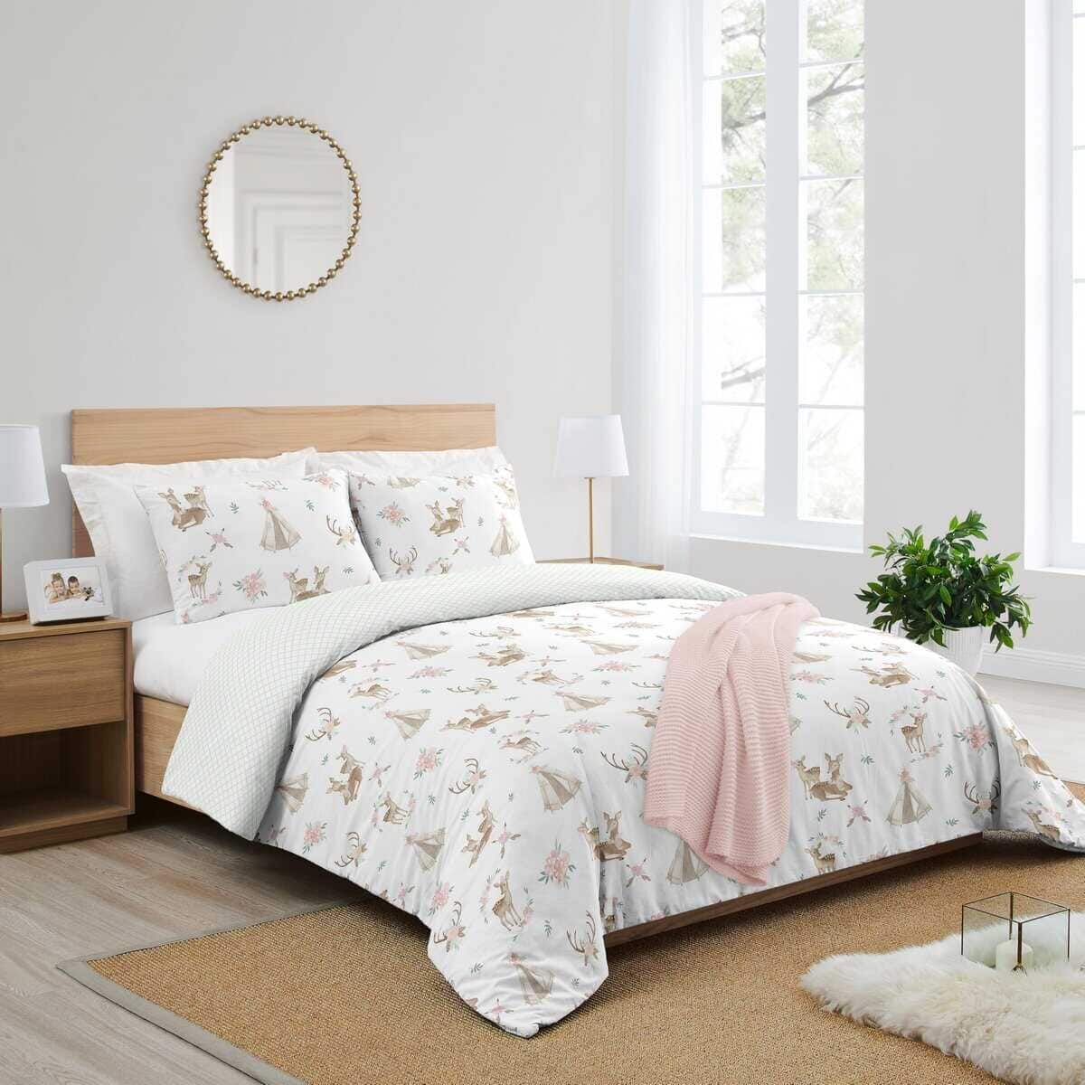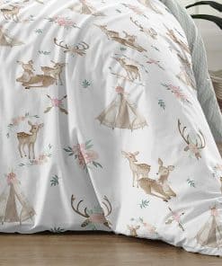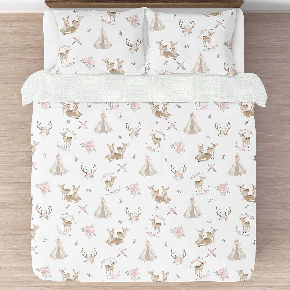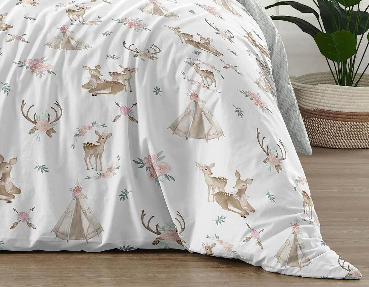 Añade un toque bohemio y floral al dormitorio de tu hija con este hermoso set de cama de Sweet Jojo Designs. El juego incluye un conforter ligero Full/Queen y dos fundas estándar, todo con un diseño encantador de ciervos, flores acuarela y tipi. La tela está hecha de microfibra cepillada para mayor suavidad y durabilidad. Además, este set es lavable a máquina para mayor comodidad. Complementa este diseño con accesorios a juego como cortinas, cestas de ropa, cortinas de baño y cojines para un look cohesivo en el dormitorio de tu hija.