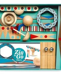 El set de construcción de carrera de dominó DJECO Zig & Go es un conjunto único donde creas una pista para reacciones en cadena, momento mágico y acción sin parar. Crea el diseño de tu elección mientras planeas cómo la máquina de acción / reacción puede atravesar todo el curso y levantar la bandera o tocar la campana. Un genial juguete educativo donde puedes aprender física temprana, geometría, energía cinética y ciencia física, todo a través de un juego absorbente. ¿Cuántos diseños diferentes puedes crear? Comenzando en Francia en 1954, DJECO crea galardonados productos para niños atemporales dedicados a la calidad, valor y desarrollo infantil. Con una filosofía de creatividad, audacia y pasión, nuestros productos son reconocidos por ser tan hermosos como entretenidos. Creemos que el juego es esencial para el crecimiento intelectual de un niño; despertando la curiosidad, enriqueciendo una imaginación sin límites y celebrando su brillo interior. Los juguetes DJECO atraen, energizan y entretienen. Originalmente enfocados en juguetes, juegos y rompecabezas, se han expandido a manualidades y decoración del hogar, conjuntos diseñados con arte, inspiración y una estética única y práctica. Creando un lugar donde los niños pueden mantener sus manos en la pintura, pero sus imaginaciones en las estrellas. Colaboramos con cientos de artistas de renombre internacional que comparten nuestra visión de promover el descubrimiento artístico y la libertad de la imaginación a través del juego. Hechos con los mejores materiales con atención exacta y meticulosa al detalle, valor de juego y arte, los productos de DJECO están revolucionando la caja de juguetes. Las ilustraciones atractivas cautivan al niño, el juego excepcional cautiva, y la experiencia realza el sentido de asombro y alegría. Todos los productos de DJECO son seguros para los niños y completamente no tóxicos, cumpliendo y superando todos los estándares de prueba de EE. UU. y Europa.