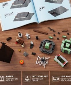 El set de Construcción de Casa Embrujada de iATOM es perfecto para aquellos que buscan crear un ambiente espeluznante en Halloween. Con 1,196 piezas, esta casa embrujada es apta para niños de 8 años en adelante, así como para adultos. Cada detalle de la aldea de Halloween ha sido meticulosamente diseñado, desde las figuras de calabazas y murciélagos hasta los fantasmas blancos y las ramas secas. Con un tamaño de aproximadamente 13 pulgadas de altura, 5.7 pulgadas de ancho y 8.5 pulgadas de longitud, esta casa embrujada cuenta con una fuente de alimentación directa USB, eliminando la necesidad de cambiar pilas. La estructura se ha diseñado y probado para garantizar su estabilidad, y las instrucciones de construcción coloridas te guiarán a través del montaje. iATOM se compromete a brindar a cada cliente productos de alta calidad y un excelente servicio postventa. El set de Construcción de Casa Embrujada se envía en una caja de empaque resistente y hermosa y estamos disponibles para ayudarte en caso de cualquier pregunta o problema durante el proceso de construcción y juego. ¡Sorprende a tus amigos y familiares con este increíble set de construcción de la casa de terror de Halloween!
