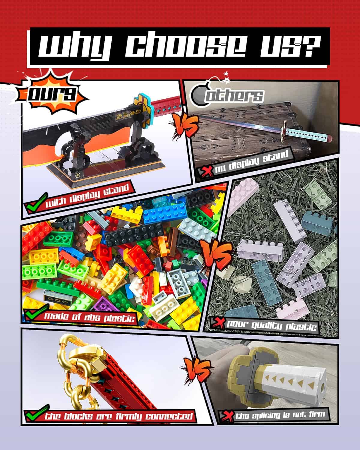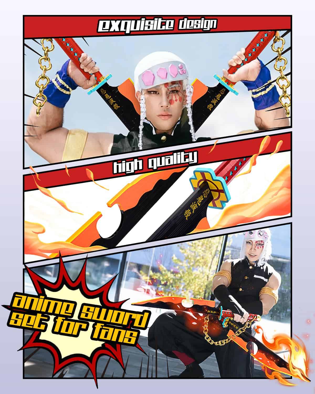 Inspirado en la espada de Tengen Uzui del anime Demon Slayer, este set de construcción de espada katana incluye 1,478 bloques y un soporte de exhibición. La longitud total alcanza las 82 pulgadas (incluyendo la cadena), mientras que la espada en sí mide 41 pulgadas, asemejándose estrechamente a una katana real para una sensación auténtica. Ideal para cosplay, pero es adecuado solo para movimientos ligeros. Compatible con marcas líderes de bloques de construcción, este set incluye un manual de instrucciones a todo color. ¡Armar la espada fomenta la coordinación mano-ojo, habilidades para resolver problemas y pensamiento creativo, convirtiéndola en una valiosa actividad STEM para niños y adolescentes!