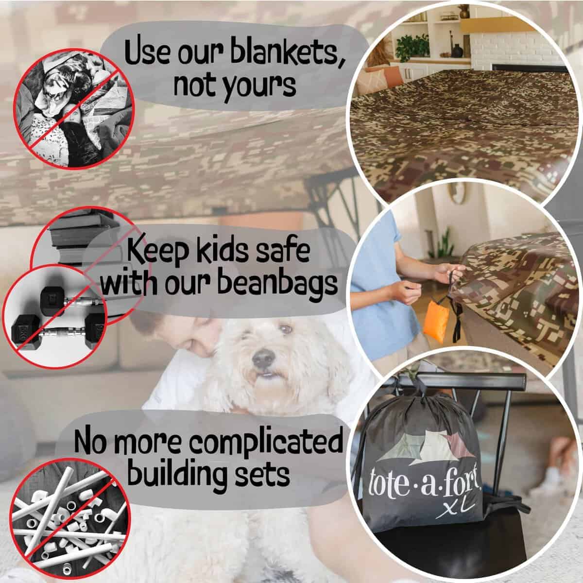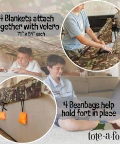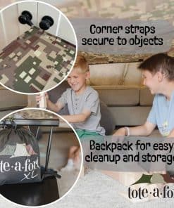 Desata la imaginación de tu hijo con el Kit de Construcción de Fortalezas Tote a Fort! Este kit hace que construir una fortaleza sea fácil y divertido, ofreciendo horas de entretenimiento para niños activos.