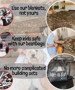 Presentamos el Kit de Construcción de Fortalezas Tote a Fort, la solución definitiva para el tiempo de juego imaginativo de los niños! No más luchas con mantas y complicados sets de construcción para crear la fortaleza perfecta. Nuestro kit simplifica el proceso, proporcionando todo lo que tu pequeño necesita para construir su propio escondite épico. Con tres mantas y una variedad de opciones de fijación, las posibilidades para los diseños de fortalezas son interminables. Además, las bolsas de frijoles incluidas garantizan estabilidad, para que las fortalezas se mantengan en pie durante las sesiones de juego más aventureras. Después de que la diversión termine, la limpieza es fácil con el saco de cordón conveniente para almacenamiento y transporte. Ya sea en interiores o exteriores, deja que la imaginación de tu hijo se desborde mientras descubre la alegría de construir fortalezas con el Kit de Construcción de Fortalezas Tote a Fort. ¡Construye el espacio de aventura definitivo para tu pequeño hoy!