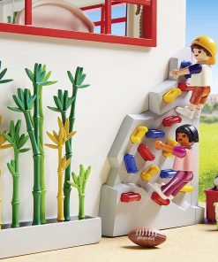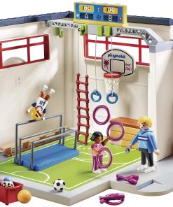 ¡Juega tus deportes favoritos y mantente activo en la clase de gimnasia! Equipado con una pista de baloncesto, barras asimétricas, escalera de escalada y más, este gimnasio está listo para todo tipo de actividades deportivas. No importa qué deporte elijas, lleva la cuenta de quién va ganando con el marcador funcional. Afuera, una pared de roca agrega diversión cuando el clima es agradable. Durante la clase, los estudiantes pueden guardar su equipo en los casilleros. Conecta este set al edificio de la escuela amueblado (9453 se vende por separado) para aún más diversión, o crea una escena escolar completa con el resto del tema escolar PLAYMOBIL (9453-9457 se vende por separado). El set incluye una figura de adulto, dos figuras de niños, estructura de gimnasio, pista de baloncesto, red de baloncesto, escalera de escalada, barra asimétrica, anillos de gimnasia, balones de fútbol, mochilas, marcador, bolsa de deporte y muchos otros accesorios. Dimensiones: 11 x 11.4 x 8.6 pulgadas (LxAxAl). Recomendado para mayores de cinco años. Advertencia. PELIGRO de asfixia. Contiene una pelota pequeña y piezas pequeñas. No apto para niños menores de 3 años.