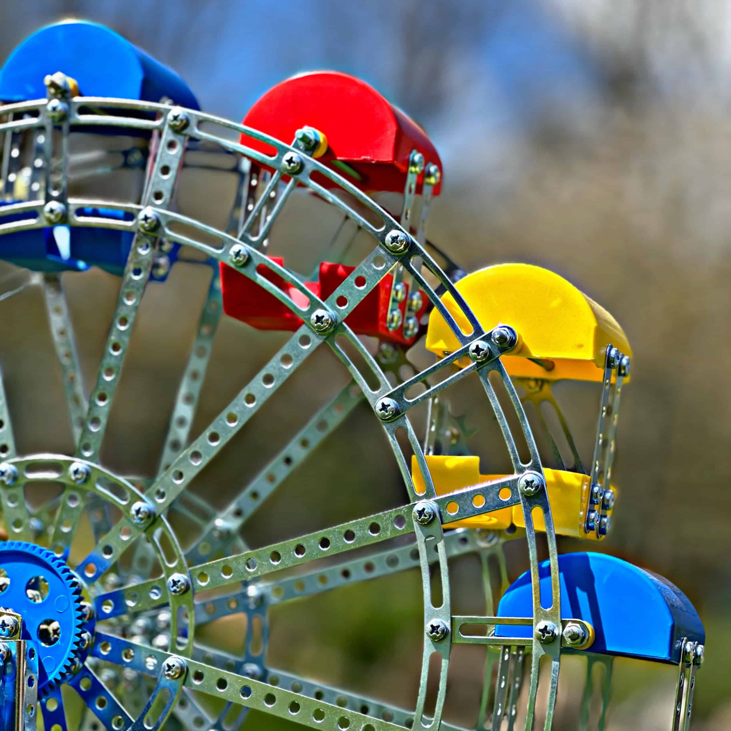 ¡Vueltas y vueltas darás! ¡Recrea un clásico de carnaval con el kit de construcción de metal Eitech Ferris Wheel. Acepta el reto y diviértete construyendo la rueda giratoria vertical y los coloridos carros de pasajeros con más de 1200 piezas. ¡Diseñado para promover y desarrollar el pensamiento tridimensional, la creatividad y el aprendizaje al mismo tiempo que te diviertes! Se incluyen instrucciones ilustradas paso a paso para una fácil orientación. Este set de construcción educativo está diseñado para que los niños ejerciten sus habilidades prácticas, imaginación y rendimiento cognitivo al armar este set de Eitech. Todas las piezas están hechas de acero pulido de alta calidad y fabricadas en Alemania.