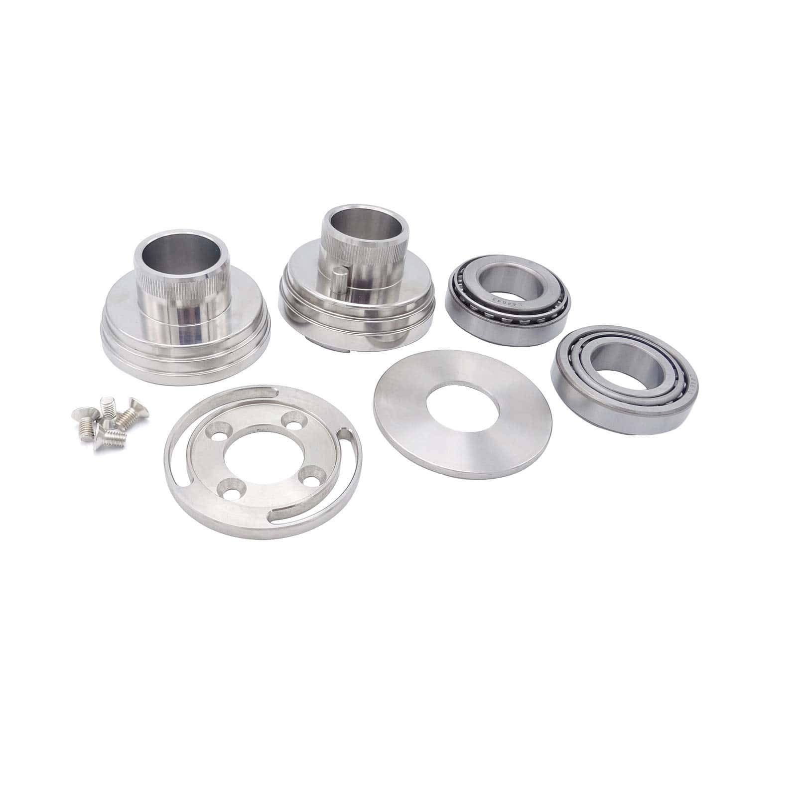El paquete incluye: un set de Kit de Cojinete de Copas de Cuello Cromadas con Parada de Horquilla y hardware de montaje
