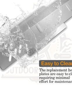 Fabricadas en acero inoxidable resistente, cada placa de calor de parrilla Backyard mide 15 pulgadas de largo y 6 pulgadas de ancho, proporcionando una cobertura amplia para tu parrilla. Las dimensiones están perfectamente adaptadas para satisfacer tus necesidades específicas, garantizando un ajuste perfecto e instalación sin problemas.