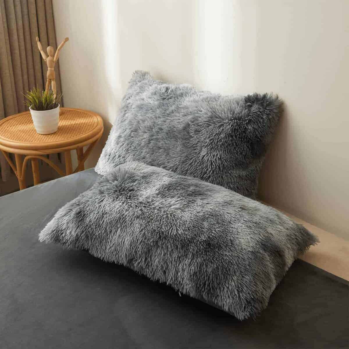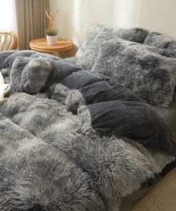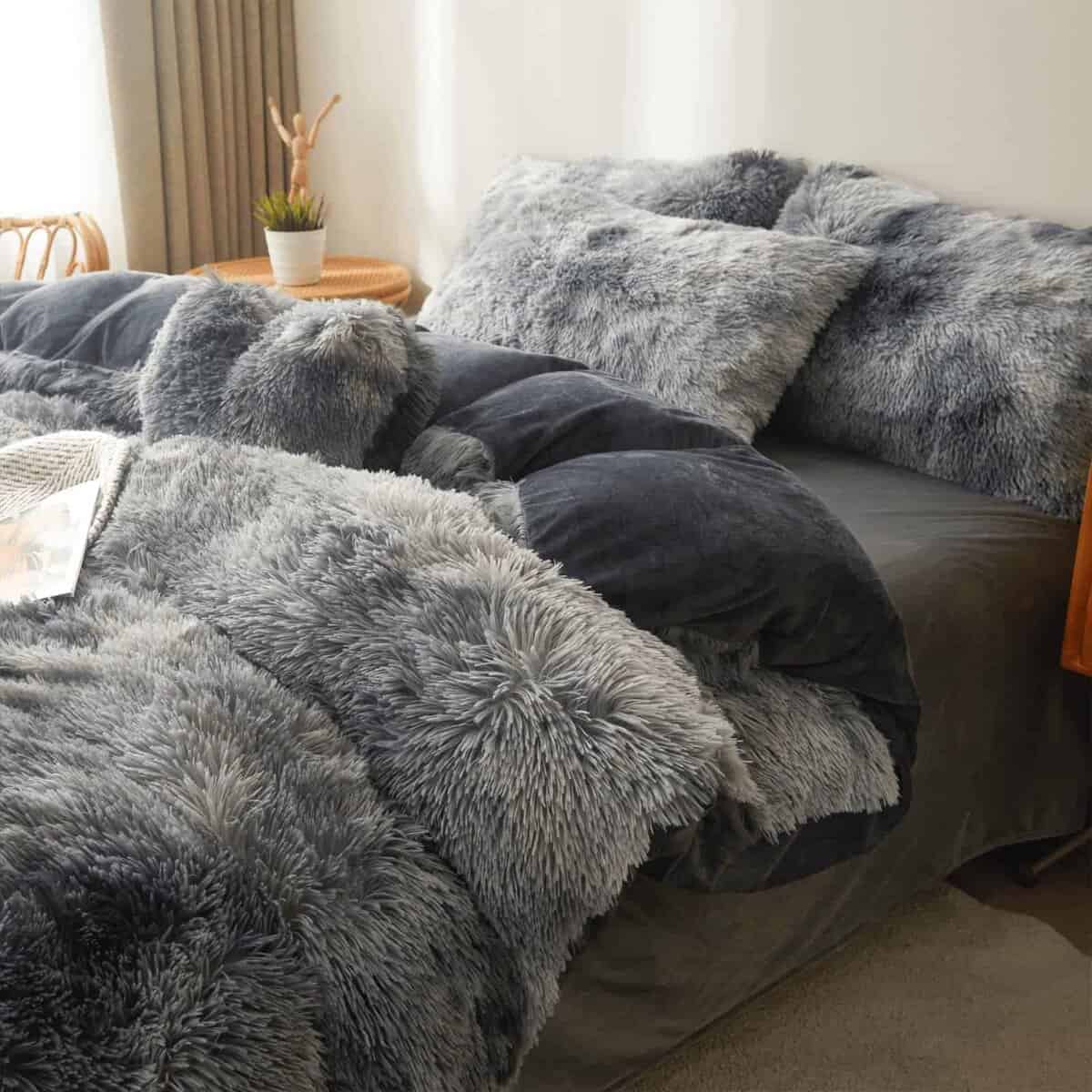 Set de Cubierta de Edredón de Felpa Peluda Gris Oscuro Tie