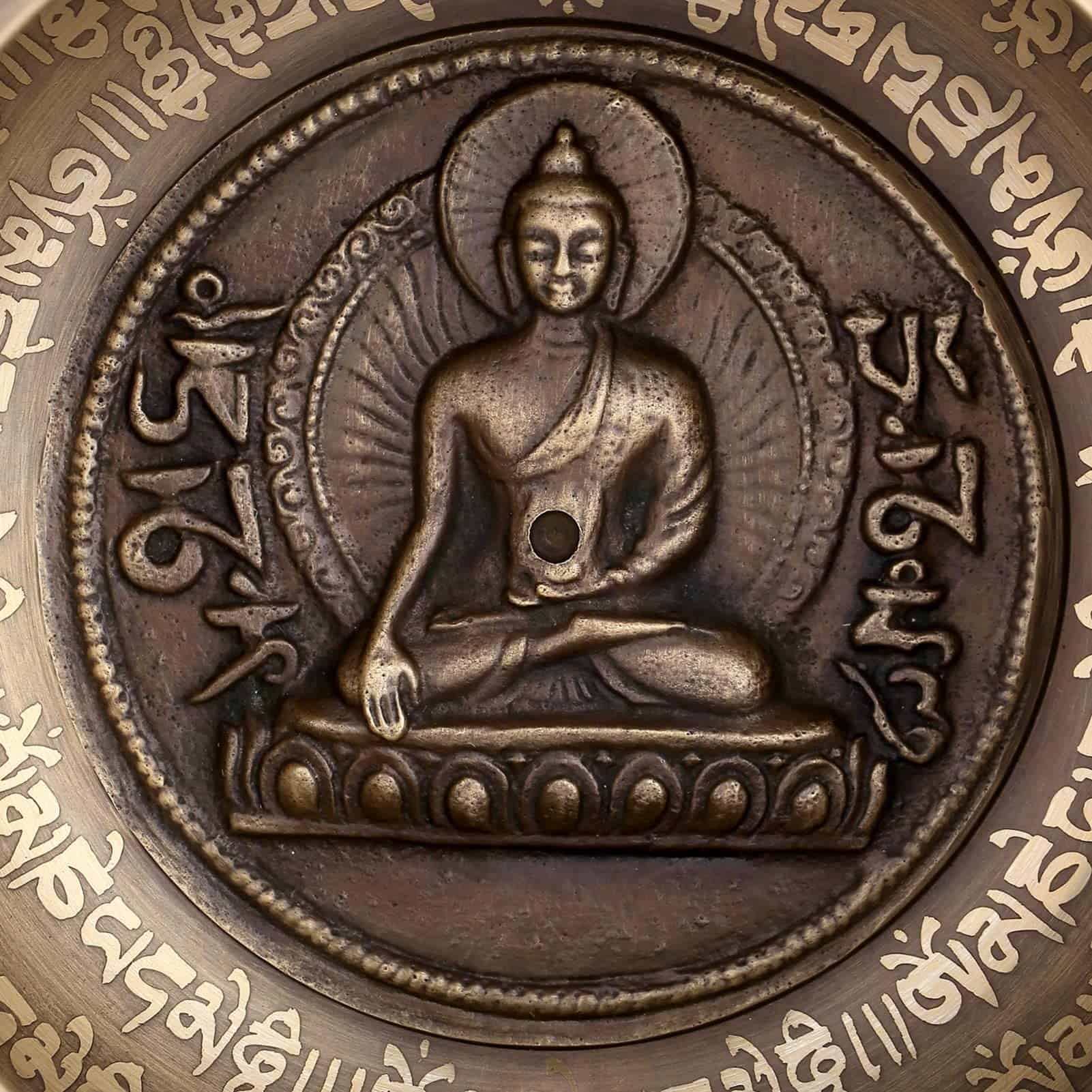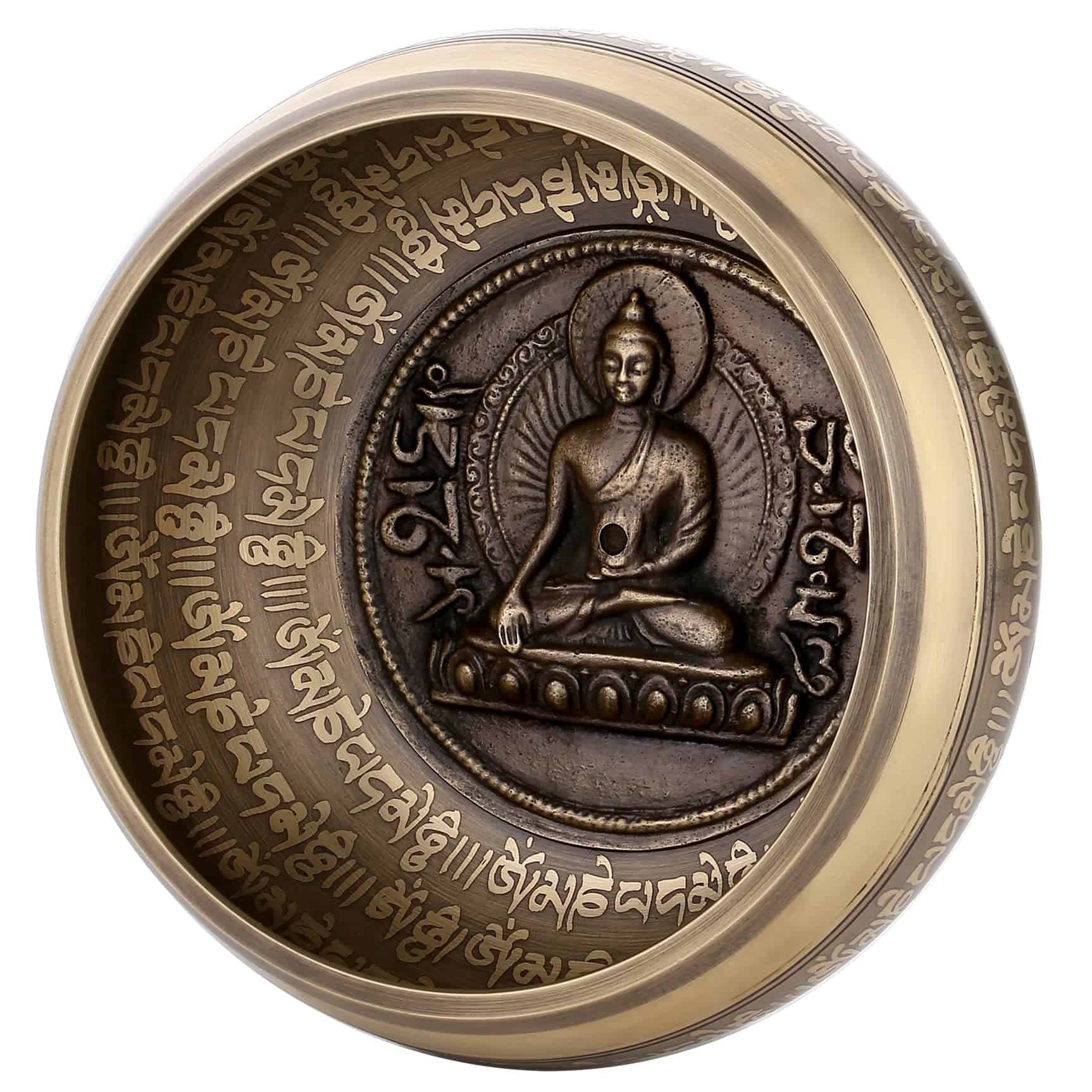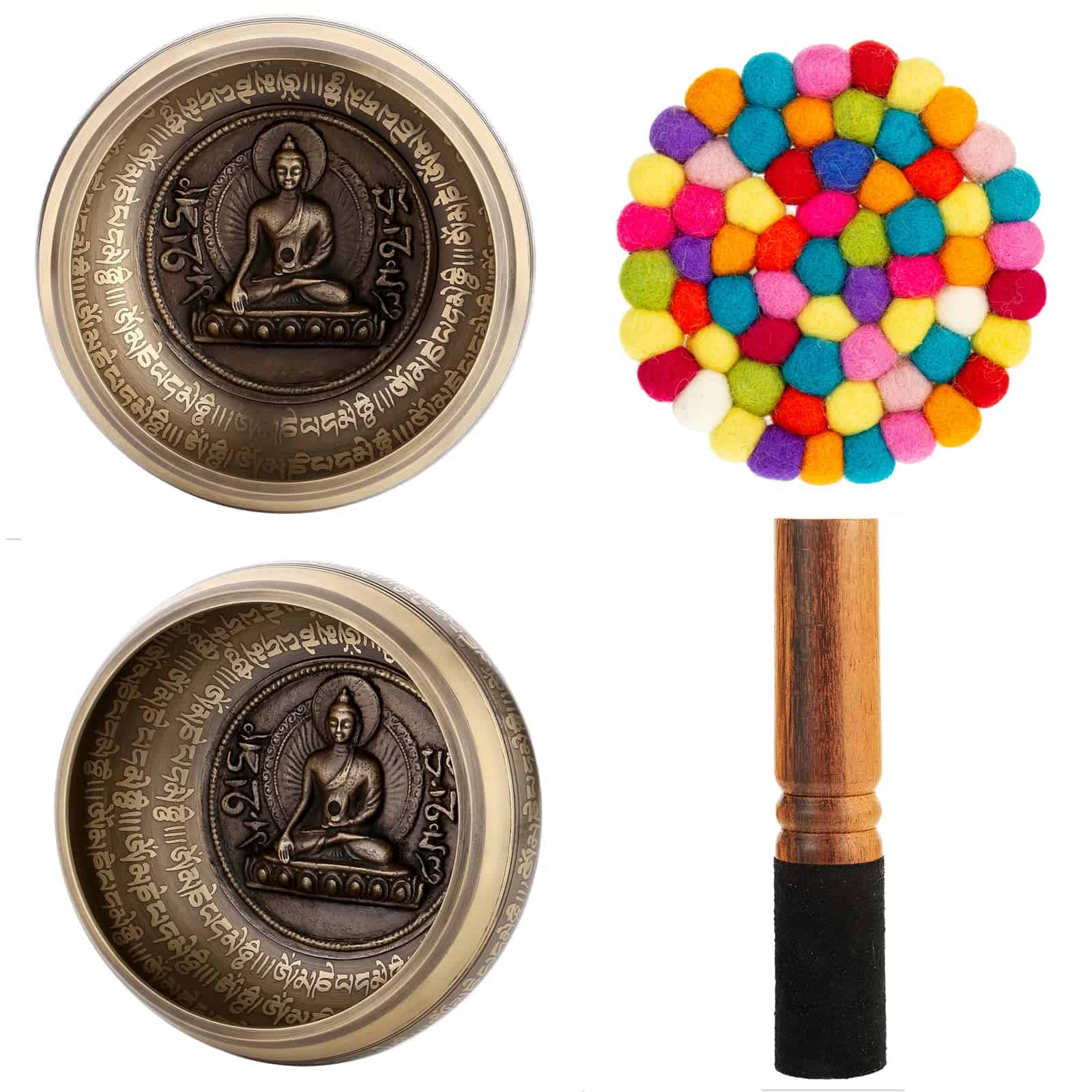 — Tema: Voz del Himalaya. Estilo cultural: sanación, equilibrio de chakras, relajación, paz interior, armonía. — La lenta labor hace un trabajo fino. Un cuenco tibetano budista tarda 10 días, 240 horas en hacerse, pasa por 26 procesos de producción, maneja 20 detalles. Hecho a mano por artesanos nepaleses de primera. Todo hecho a mano. — Hecho de metal natural del Himalaya, menos impurezas, alta pureza, ratio armonioso de cobre y estaño. Nuestro cuenco de sanación de chakras suena tan claro como gotas de agua, sin impurezas. Cuencos de canto meditativo budista guían a las personas más fácilmente hacia un estado de relajación profunda y meditación. — El cuenco de canto fue originalmente una herramienta para que Buda practicara yoga y meditación, y más tarde se convirtió en un instrumento musical para terapia de sonido. Buda nos ofrece un camino para construir un jardín espiritual. Cada uno de nuestros cuencos de canto budistas ha sido bendecido por el maestro en los templos de Asia. Solo este tipo de cuenco de sonido budista puede inspirarte y buscar alcanzar niveles más altos de meditación y atención plena. — Cuenco budista perfecto como sanación musical, decoración budista, decoración de meditación, decoración de yoga, decoración zen, decoración espiritual, regalo de atención plena. Gran cuenco de sonido de atención plena para mostrar en la estantería, alféizar de la ventana, altares, cuarto de meditación, cuarto de yoga, mesa de café, mesita de té, escritorio de computadora, mesa de comedor. Cuenco tibetano perfecto con piedras de cristal de chakras, pirámide de cristal de sanación, jardín zen, porta inciensos, velas aromáticas, salvia, árbol de cristales, lámpara de sal del Himalaya.