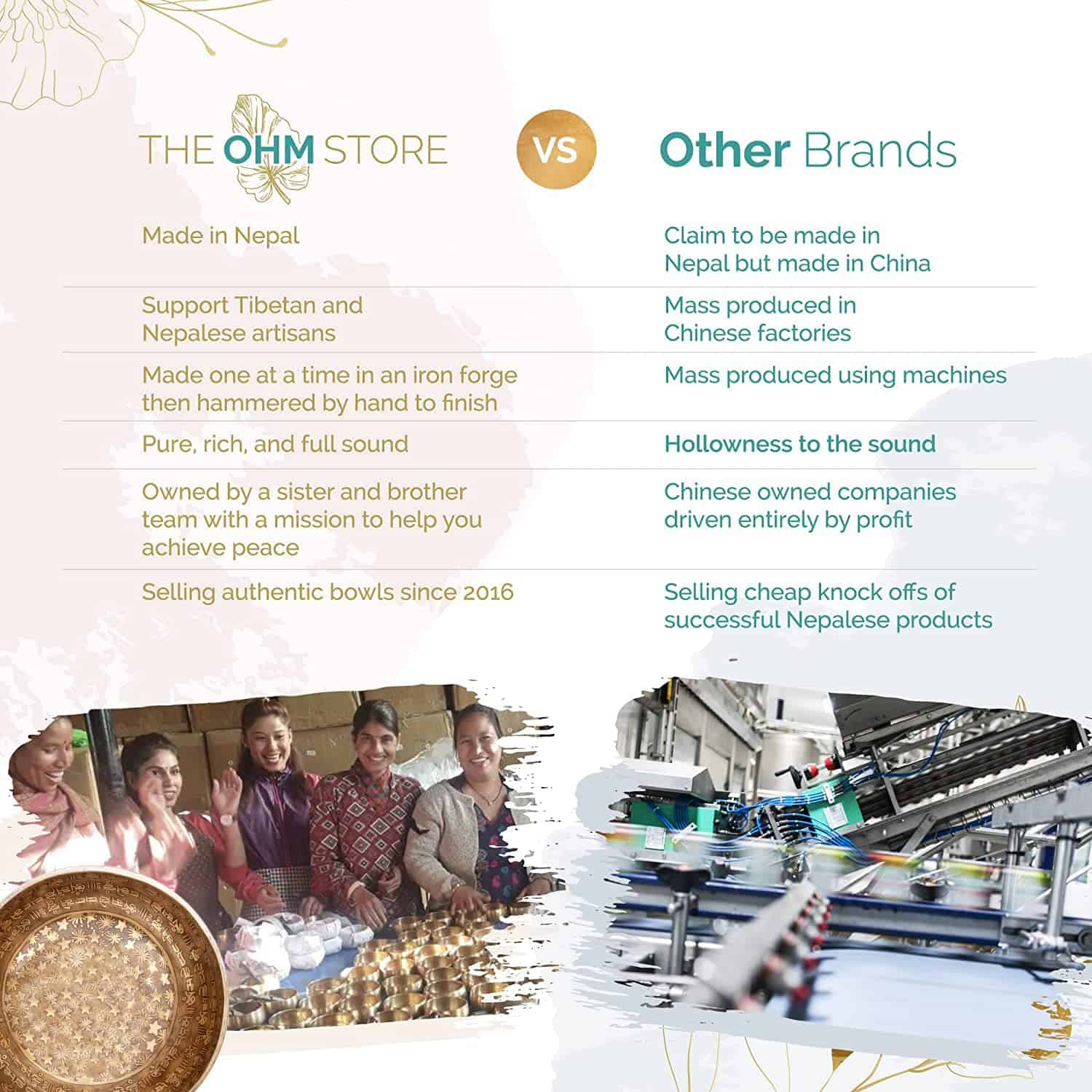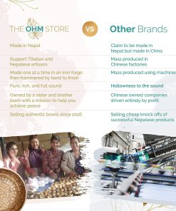 1. DISFRUTA DE TONOS DE SANACIÓN PACÍFICOS QUE AYUDAN A REDUCIR EL ESTRÉS Y PROMOVER LA SANACIÓN HOLÍSTICA El cuenco tibetano grande Innerspace crea tonos de sanación profundos y duraderos. Resonando por más de un minuto, puedes tocar fácilmente tonos pacíficos y fascinantes en este cuenco de sonido para crear un baño de sonido que ayuda a reducir el estrés y la ansiedad y promover la sanación espiritual, mental y física. 2. MEJORA YOGA, MEDITACIÓN, ORACIÓN, SANACIÓN DE CHAKRAS Y MENTALIDAD Como una de las herramientas energéticas más antiguas e instrumentos de sanación de sonido, los cuencos de meditación crean una energía calmante para promover la sanación espiritual, mental y física a través de la respuesta sensorial autónoma meridiana (ASMR). Prácticas espirituales como el equilibrio de Chakras, Reiki, meditación, afirmaciones positivas y establecimiento de intenciones se utilizan en todo el mundo para sanar y reequilibrar tu energía. 3. REGALO DE CUIDADO PERSONAL PENSATIVO PARA MUJERES U HOMBRES Este instrumento de percusión manual nepalí para adultos es un accesorio de meditación indispensable que es un regalo único de espiritualidad para amantes de la meditación, practicantes de yoga, cumpleaños, Navidad, o en regalos de cuidado personal holísticos para mujeres u hombres. 4. 100% AUTÉNTICOS CUENCOS TIBETANOS DE BRONCE PURO MARTILLADO A MANO Esteset de meditación de cuenco de sonido de alta calidad, hecho a mano, tiene aproximadamente 6.5 pulgadas e incluye un mazo envuelto en ante de árbol Sisau nepalí y un cojín cosido a mano hecho de algodón tibetano. Es martillado a mano en las estribaciones del Himalaya por artesanos nepalíes para ser tan único como tú. Úsalo como decoración espiritual para crear un ambiente de calma emocional y sanación. 5. INSPECCIONADOS Y PROBADOS A MANO PARA LA CALIDAD DE SONIDO PERFECTA Ohm Store asegura que produce y vende solo los sets de cuencos tibetanos de mejor calidad y mejor sonido inspectando y probando a mano cada set para una calidad de sonido perfecta. Respaldamos nuestra calidad con una garantía de por vida. Debido a la naturaleza hecha a mano de nuestros cuencos de sonido, el tamaño y la forma de cada uno variarán ligeramente. Nunca habrá otro exactamente como el tuyo. El espíritu del artista se muestra en el detalle único y exclusivo.