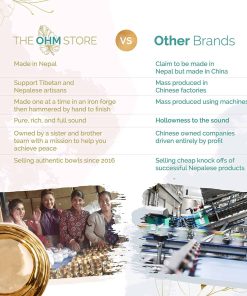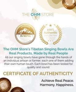 Ohm Store se asegura de producir y vender solo los sets de cuencos de canto tibetano de la más alta calidad y mejor sonido al inspeccionar y probar a mano cada set para una calidad de sonido perfecta. Los productos están diseñados para durar y ofrecer un uso confiable a lo largo del tiempo. Debido a la naturaleza artesanal de los cuencos de canto, el tamaño y la forma de cada uno se variarán ligeramente, lo que garantiza que cada cuenco sea único y diferente a los demás.