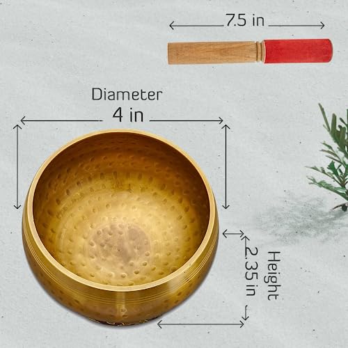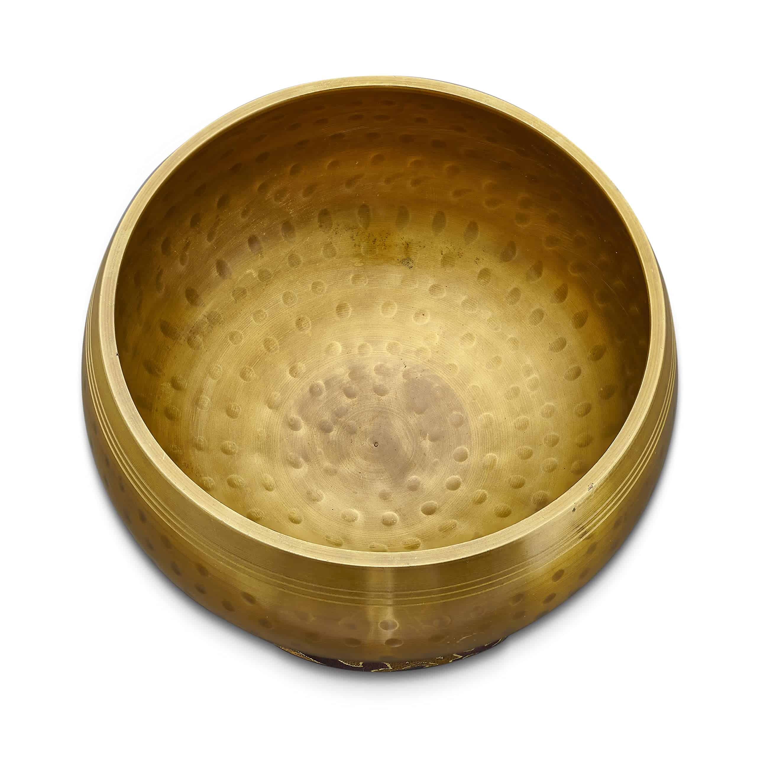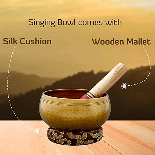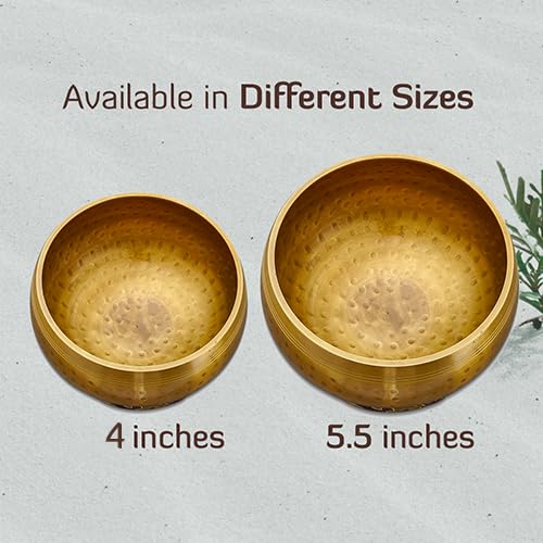 3. HECHO A MANO CON DIFERENTES METALES: Nuestros cuencos tibetanos están hechos de diferentes metales, típicamente aleaciones que incluyen cobre, zinc, hierro y trazas de oro y plata. Cada cuenco tiene un tono resonante característico, basado en la forma, tamaño, peso, dimensiones de ese cuenco específico y si está hecho a mano o no. Ningún dos cuencos suenan igual. Además, debido a que cada pieza está martillada a mano individualmente, espere ligeras variaciones con respecto a la imagen.