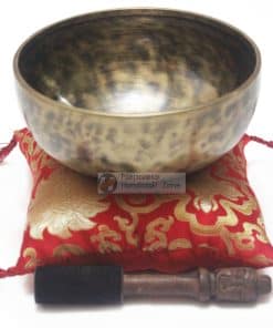 Cuenco Tibetano de Meditación de Alta Calidad de 8 pulgadas: – Este Cuenco Tibetano de Meditación de Alta Calidad de 8 pulgadas está hecho de siete metales, incluyendo cobre y plata. Este cuenco de meditación fue martillado a mano. Este cuenco de meditación martillado a mano budista tibetano fue hecho a mano en Nepal. Patina de bronce clásica con motas y remolinos más oscuros. Este cuenco está literalmente cubierto de auténticas marcas martilladas a mano. Este cuenco PREMIUM canta MUY fácilmente. Gran sostenimiento que durará y durará. Tono de rango medio completo con un dulce y constante zumbido alto. Encanto MUY distinto. Esta publicación es para un cuenco antiguo, genuinamente hecho a mano y auténtico. Se incluye un mazo y un cojín para cuenco de meditación (el color, diseño y color pueden variar) con este cuenco. Excelente cantante; sonido de zumbido excelente y pacífico. El sonido hospedado no hace justicia al cuenco. Adecuado para cualquier uso profesional, incluyendo grabación de sonido, proyectos de sonido, yoga, reiki y más. Este cuenco viene con un golpeador (también conocido como mazo, puja). DESCRIPCIÓN DEL ARTÍCULO: Peso del cuenco de meditación: 1125 g. Ancho del cuenco de meditación (diámetro): 8 pulgadas. Altura del cuenco de meditación: 4 pulgadas. Grosor del cuenco de meditación: 4 mm. Material del cuenco de meditación: Latón y 7 metales auspiciosos. Elementos de esta publicación: Cuenco, golpeador y cojín. Peso total de todos los elementos: 1500 g.