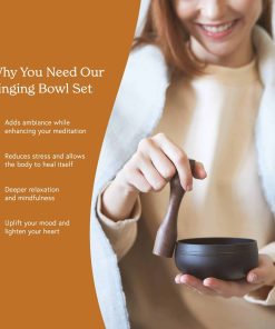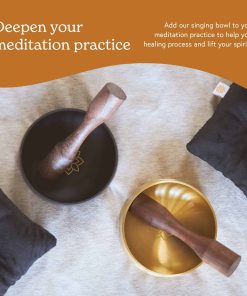 El Set de Cuencos Tibetanos de Mindful & Modern esta hermosamente diseñado, es portátil e incluye un mazo de madera y un cojín cosido a mano. Este cuenco tibetano ayuda a profundizar tu práctica de meditación y yoga al ofrecer un tono y sonido excelente. Nuestras ondas cerebrales se sincronizan con la resonancia del cuenco para crear un tipo de medicina energética que ayuda con el proceso de sanación que ocurre al entrar en un estado de meditación y atención plena.