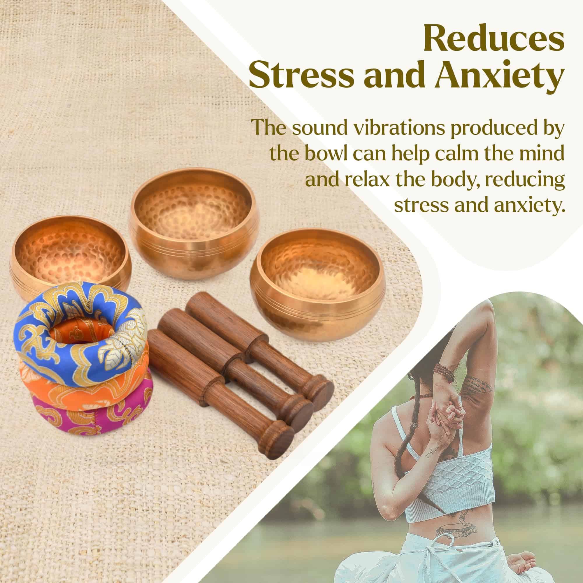 Set de Cuencos Tibetanos – Set de Meditación de 3 Cuencos