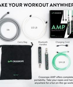 El set de cuerda para saltar Crossrope AMP 2.0 es el compañero perfecto para tus entrenamientos de fitness de alta intensidad. Con cuerdas de diferentes pesos (1/4 LB, 1/2 LB y 1LB) conectadas por Bluetooth, puedes realizar entrenamientos de intervalos y resistencia de manera efectiva. El AMP 2.0 te permite cambiar rápidamente entre diferentes mangos para un entrenamiento sin problemas, y cuenta con la función de rebobinado instantáneo de intervalos. La aplicación Crossrope te ayuda a quemar calorías más rápido al ofrecer objetivos personalizados de saltos, estadísticas de seguimiento y un Modo de Salto Libre. Además, puedes mejorar tu rendimiento con la tecnología de conteo de saltos en tiempo real y recibir retroalimentación instantánea. Sigue tu progreso fitness, gana insignias por completar entrenamientos y disfruta de un entrenamiento versátil en el gimnasio, la oficina, durante tus viajes o en casa.