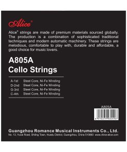 Con el set de cuerdas para violonchelo Alice A805A 4/4, obtendrás un sonido claro y brillante ideal para la práctica. Este juego completo de cuerdas incluye las cuerdas A-1ra, D-2da, G-3ra, C-4ta, todas realizadas con un núcleo de acero de alta carbono enrollado con aleación de Ni-Fe y extremo de bola niquelado. El timbre cálido y potente de este set se combina con medidas precisas que brindan una tensión bien equilibrada, ofreciendo una sensación cómoda al tocar. Perfectas para violonchelos de 4/4, estas cuerdas te garantizan calidad y durabilidad para tus interpretaciones musicales.