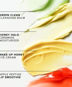 Lleva contigo tus productos de cuidado de la piel favoritos de Farmacy a donde quiera que vayas con nuestro set de cuidado de la piel de Farmacia Favoritos para viajes. Empaquetados en envases de tamaño conveniente para ayudarte a mantener tu ritual de piel saludable sobre la marcha, en cualquier momento y lugar. Este estuche de cuidado de la piel incluye nuestro galardonado bálsamo removedor de maquillaje Green Clean, crema para los ojos hidratante Wake Up Honey, hidratante facial Honey Halo para piel seca y tratamiento para labios Apple Peptide Lip Smoothie. Úsalos en una rutina completa de cuidado de la piel o por separado con otros productos de cuidado de la piel de Farmacy. Este set hidratante de los superventas de la granja a la cara está clínicamente probado para eliminar todo el maquillaje + SPF, iluminar las ojeras e hidratar al instante para una piel saludable y radiante.