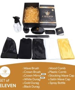 El paquete incluye una caja de satín duradera y única creada por barberos y wavers. Nuestro logo distintivo es lo que le da a nuestra marca la mayor autoridad en la comunidad de cuidado personal masculino. ¡Compra con una marca en la cual puedes confiar! Todos nuestros cepillos y peines tienen diseños únicos y están hechos a mano. Necesitas este set de cepillos para waves para añadir a tu colección. ¡Satisfacción del 100% o te devolvemos tu dinero! Cerdas fuertes y duraderas, pinceles suaves duraderos, peine de madera y peine de plástico, y durags de seda satinada con costuras cuádruples para hombres. Envuelto en un empaque de calidad, es un excelente regalo listo para cualquier hombre en tu vida en ocasiones como el Día del Padre, Navidad, Juneteenth y cumpleaños. Proporcionamos artículos de calidad y valor superiores para mejorar el cabello y el cuidado personal de hombres y mujeres de color. Disfruta de nuestro excelente servicio al cliente si tienes alguna pregunta o comentario.
