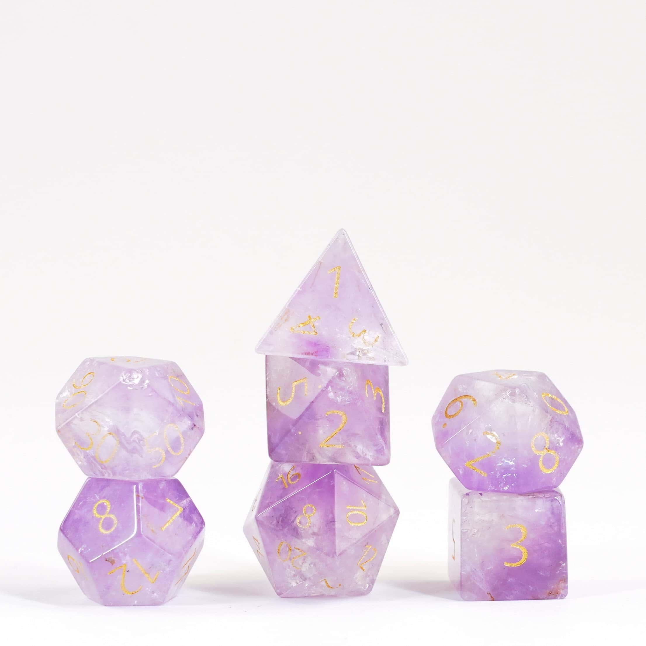 Con su peso robusto y su aspecto cautivador, este set de dados de piedra es la actualización perfecta para cualquier mesa de juegos. También es un gran regalo para tu amigo de juegos favorito. Recomendamos lanzar dados de piedra sobre superficies acolchadas, como nuestras bandejas de dados acolchadas.