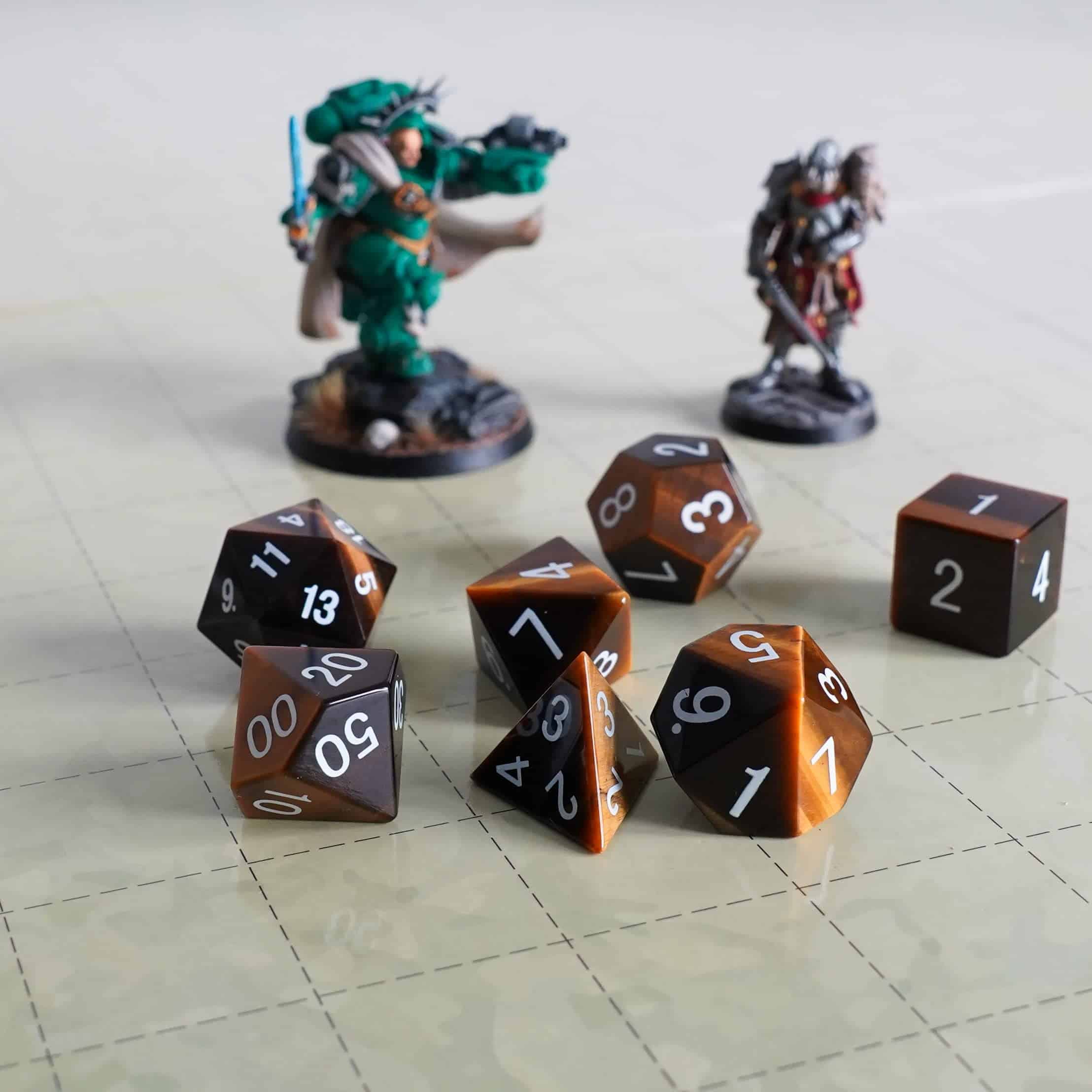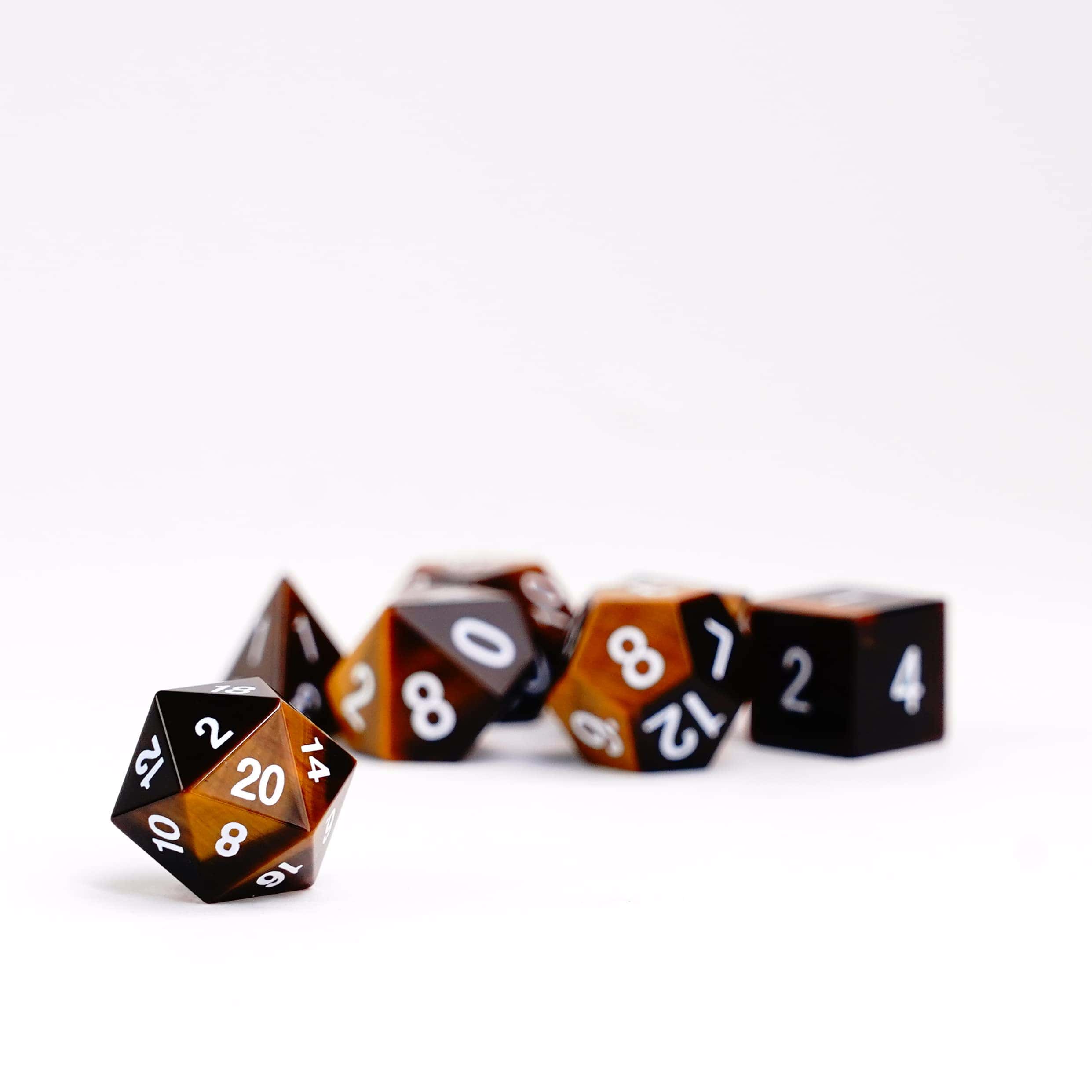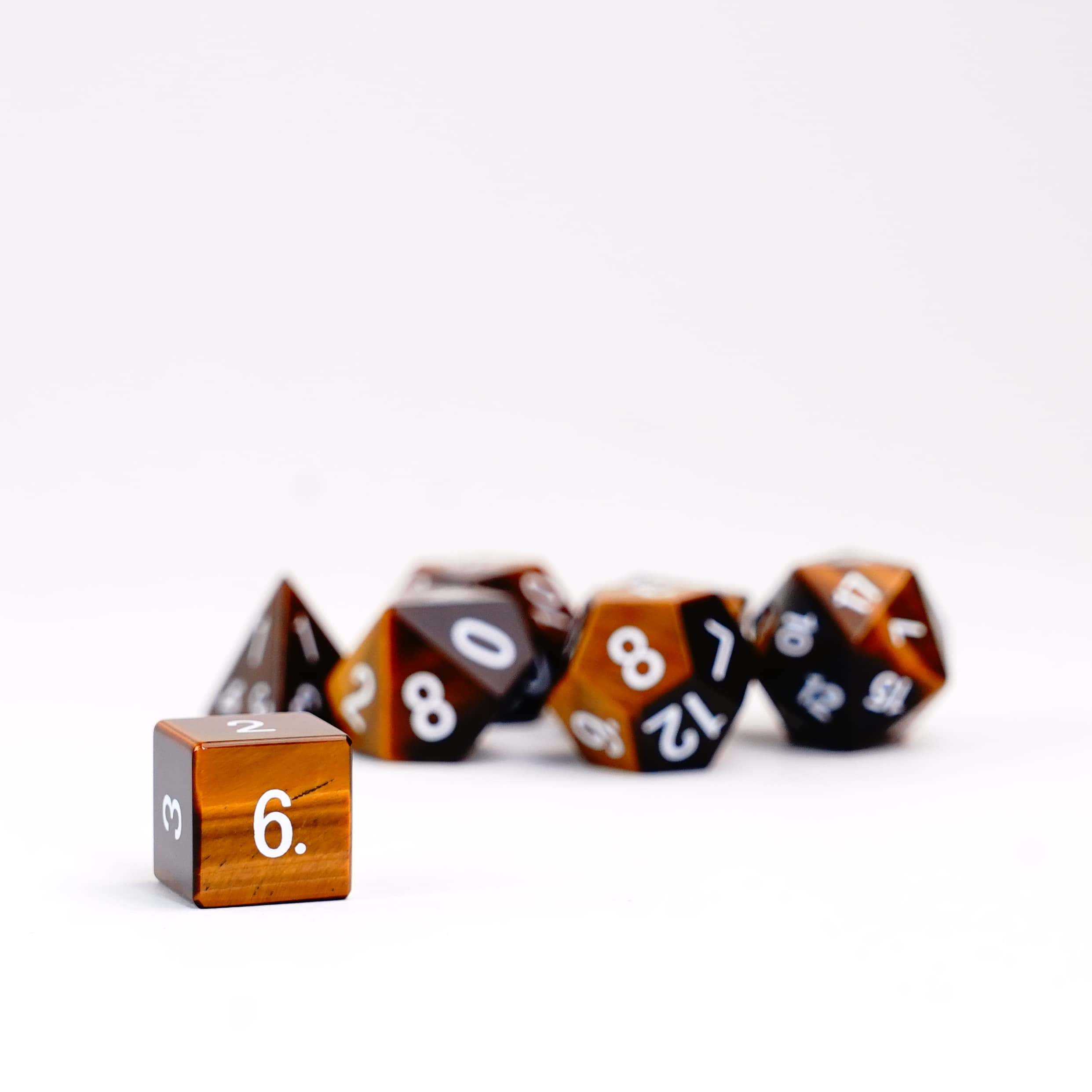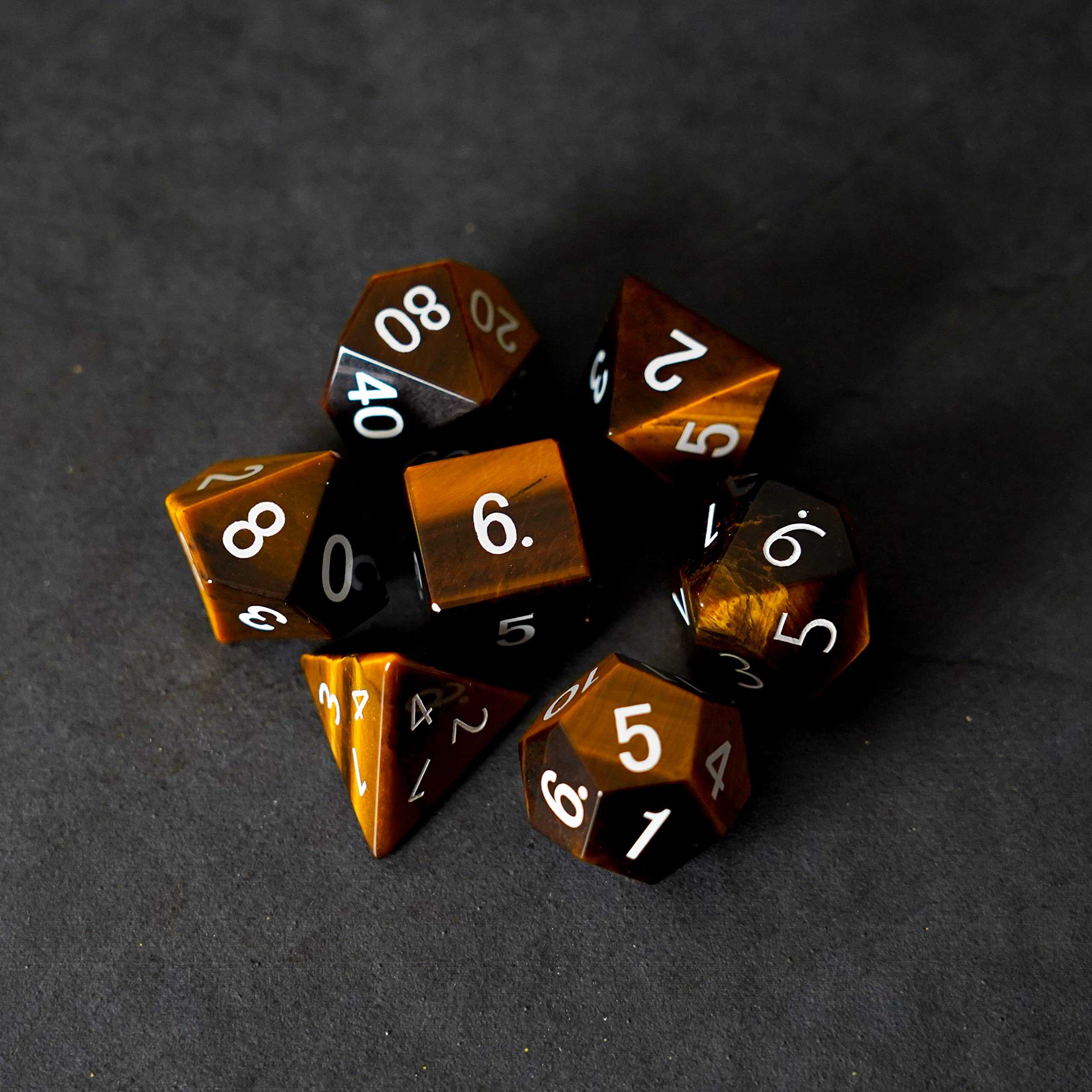 1. Nuestros dados de piedras preciosas son inigualables. Tallados con precisión en gemas de alta calidad, cada dado es una obra de arte con números impresos diseñados para un juego de por vida. 2. Desde tu primer lanzamiento, apreciarás la sensación más pesada en comparación con los dados tradicionales. Recomendamos lanzar cualquier dado de piedra en superficies acolchadas. 3. Compromiso con la calidad: cada set es extraído y elaborado con cuidado y precisión. 4. Fácil de transportar: lleva estos dados contigo a donde quieras. Nuestros dados están envueltos individualmente y se colocan en un estuche protector para maximizar la protección. 5. MDG fue fundado en 2013 en los EE. UU. por un entusiasta de 22 años de dados en Indiana que estaba cansado de no tener acceso a dados de metal de calidad. Lo que comenzó con Dados de Metal se ha expandido a piedra, resina, madera y nuevos materiales innovadores. MDG se enorgullece de hacer los productos de la más alta calidad con un toque personal y garantía de satisfacción del 100%. Un buen set de dados puede durar toda la vida, no te conformes con menos, elige calidad y personalidad!
