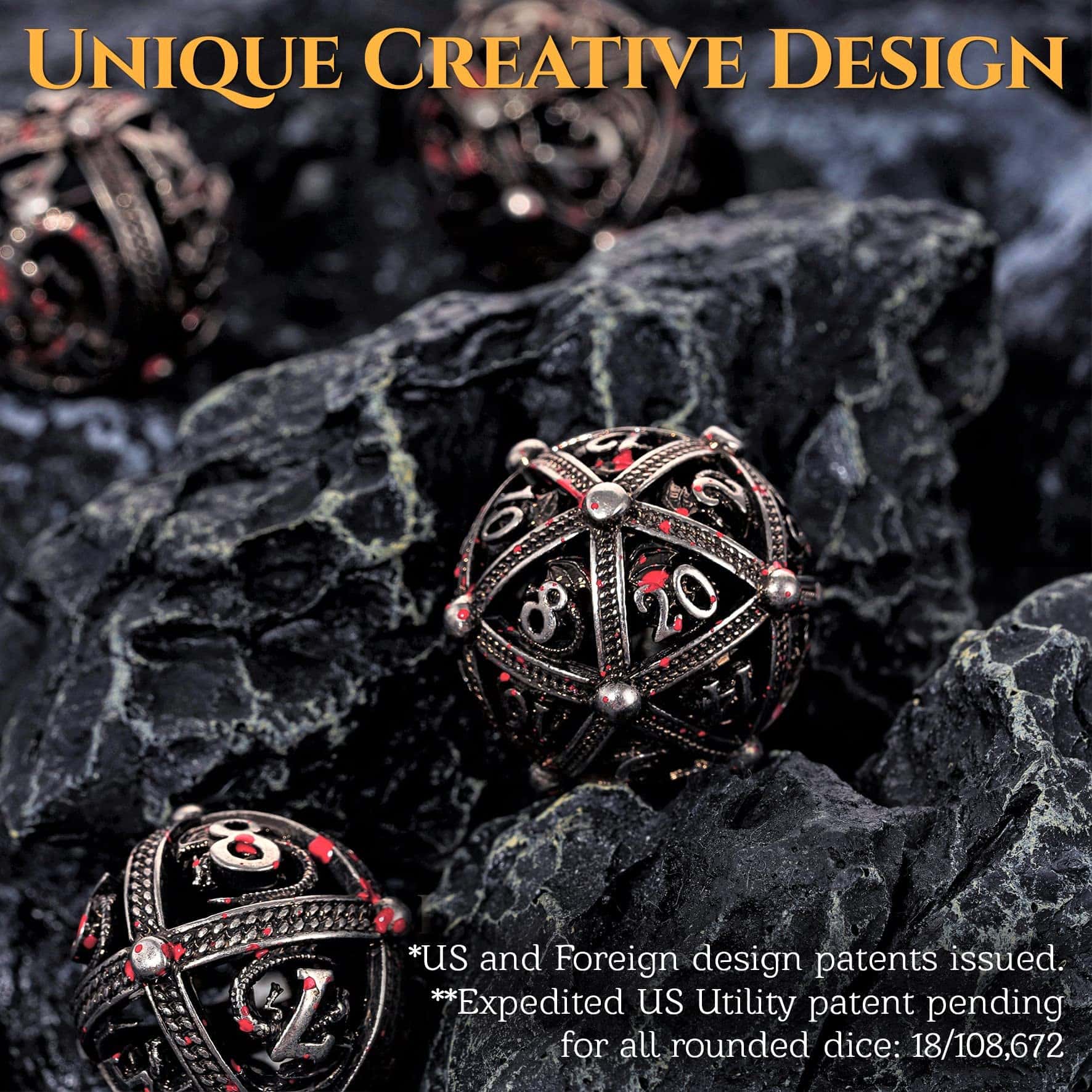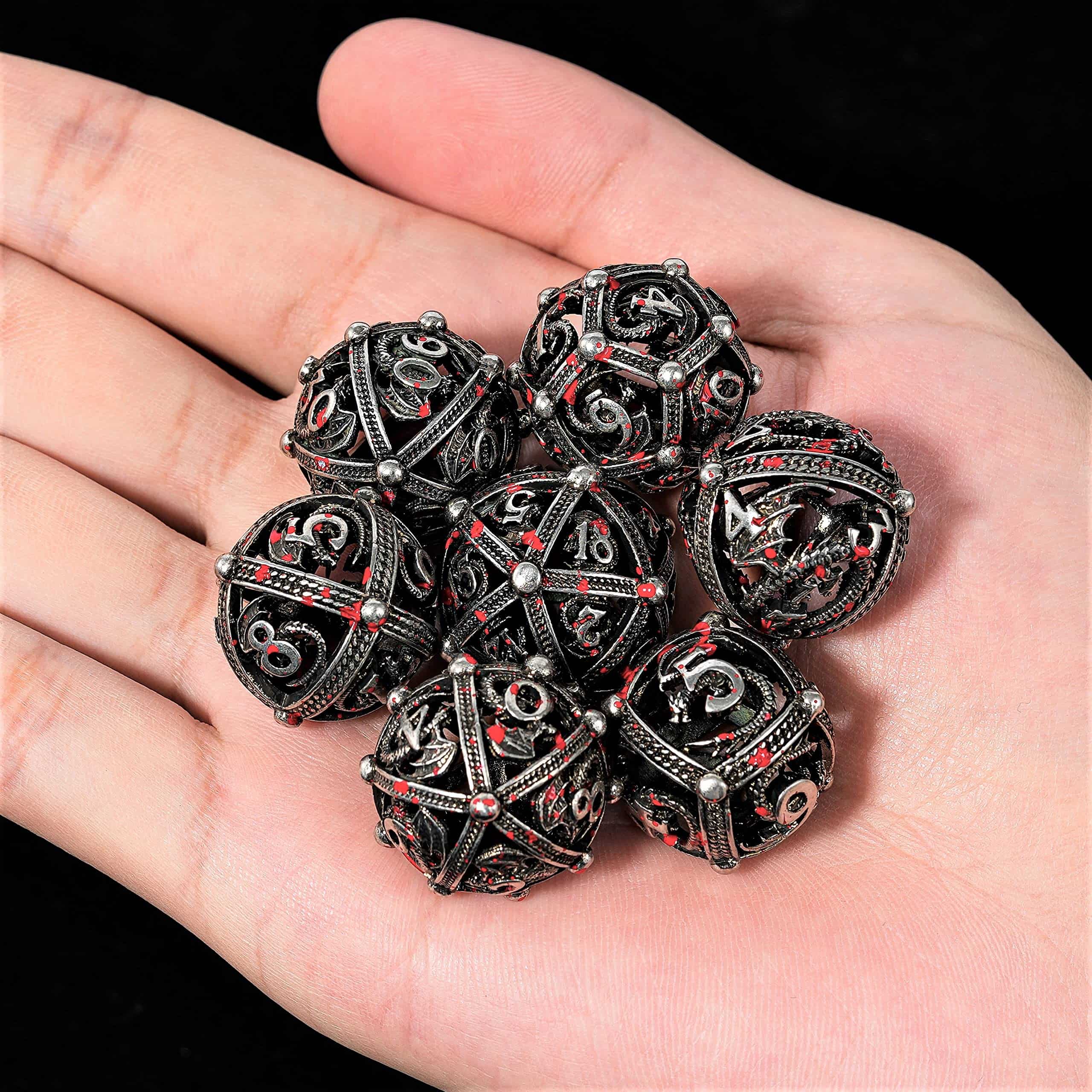 Hechos con dimensiones más grandes que la media usando metal duradero pero ligero, estos dados de D&D se sienten increíbles y funcionan de manera excelente en cualquier situación de campaña. ¡Haz de tu próxima noche de juegos una victoria abrumadora!