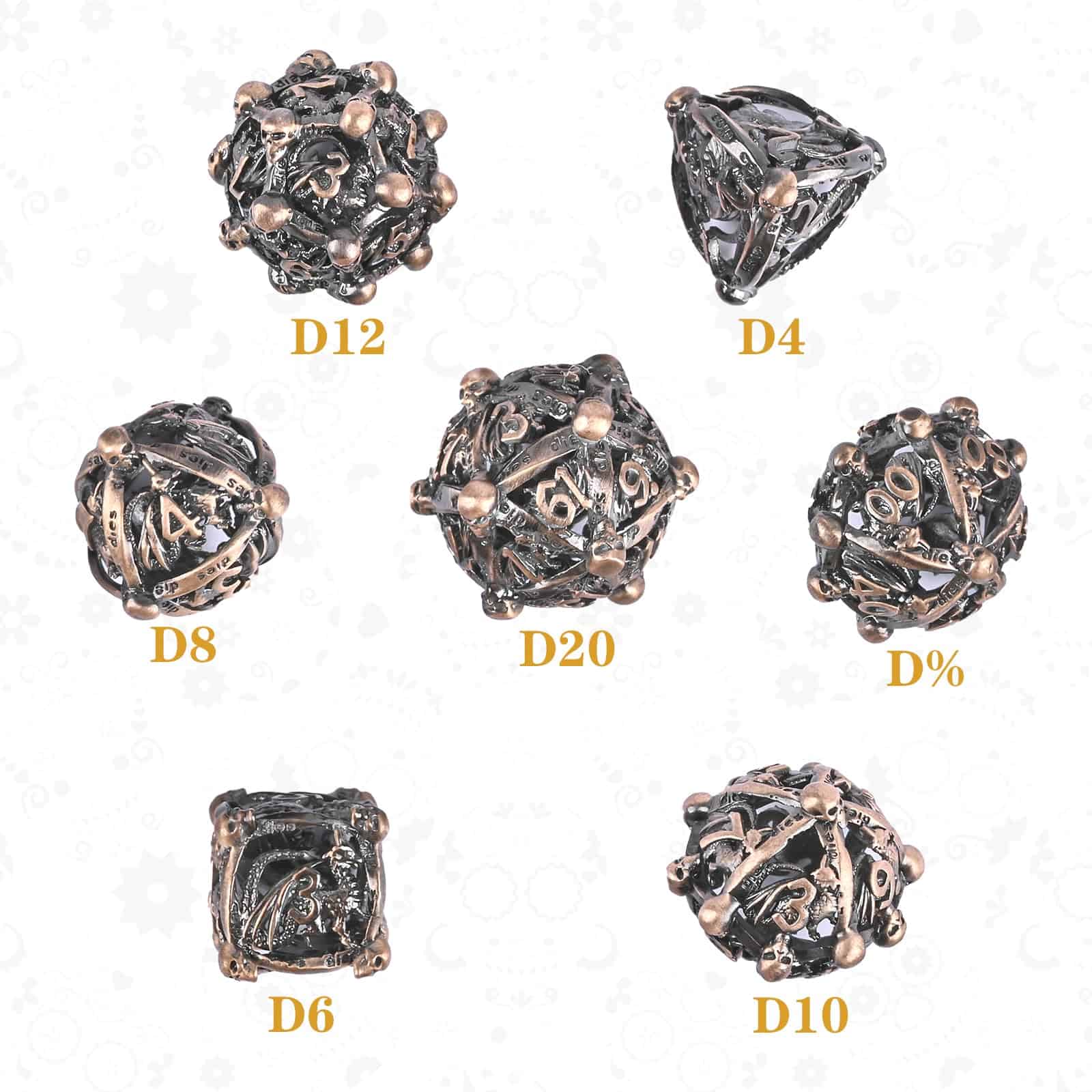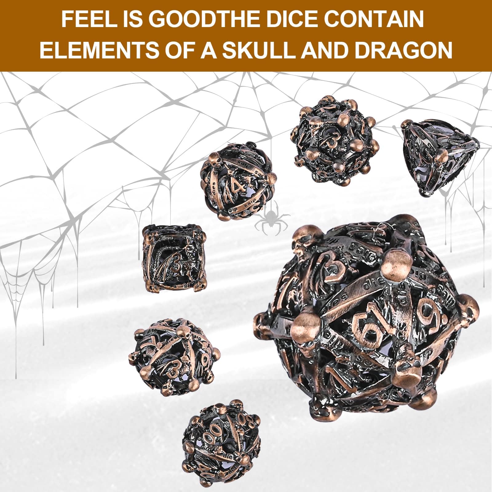 Set de Dados de Metal DND, UBEUCK 7PCS Calavera y Dragón