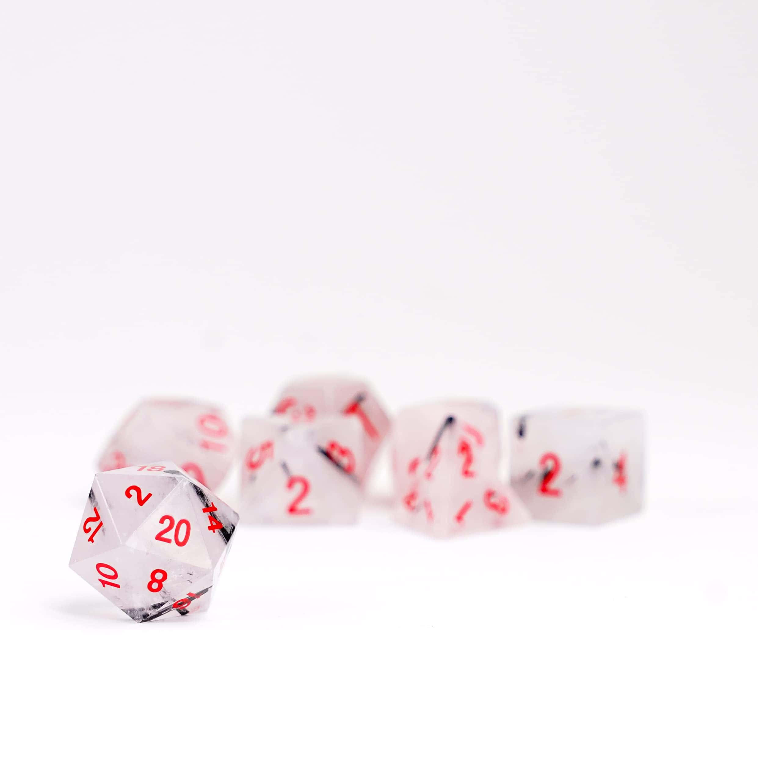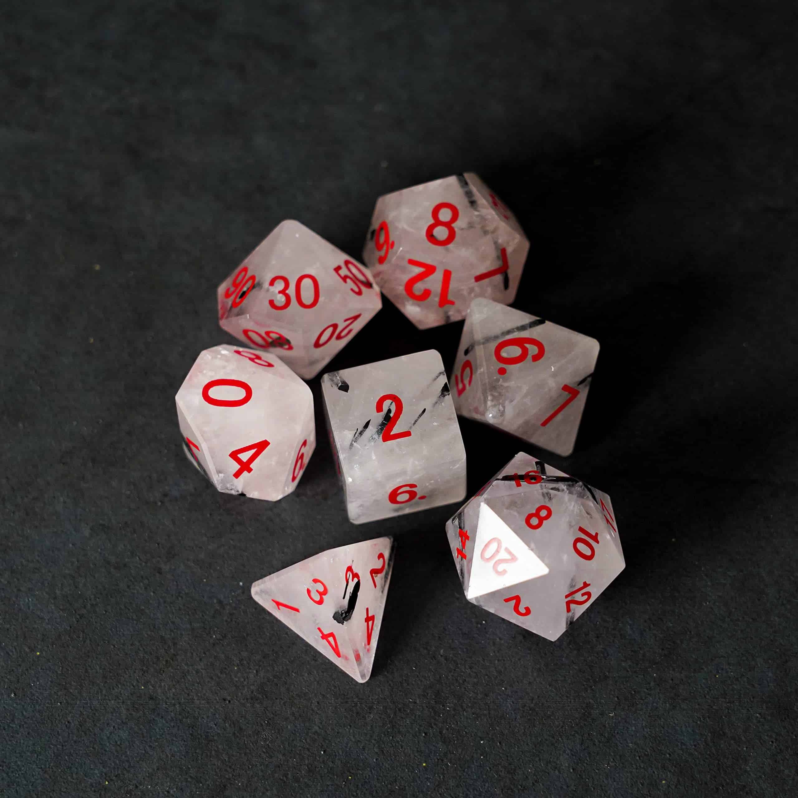1. Nuestros dados de piedra son incomparables. Cincelados con precisión en gemas de alta calidad, cada dado es una obra de arte con números impresos diseñados para un juego de por vida.