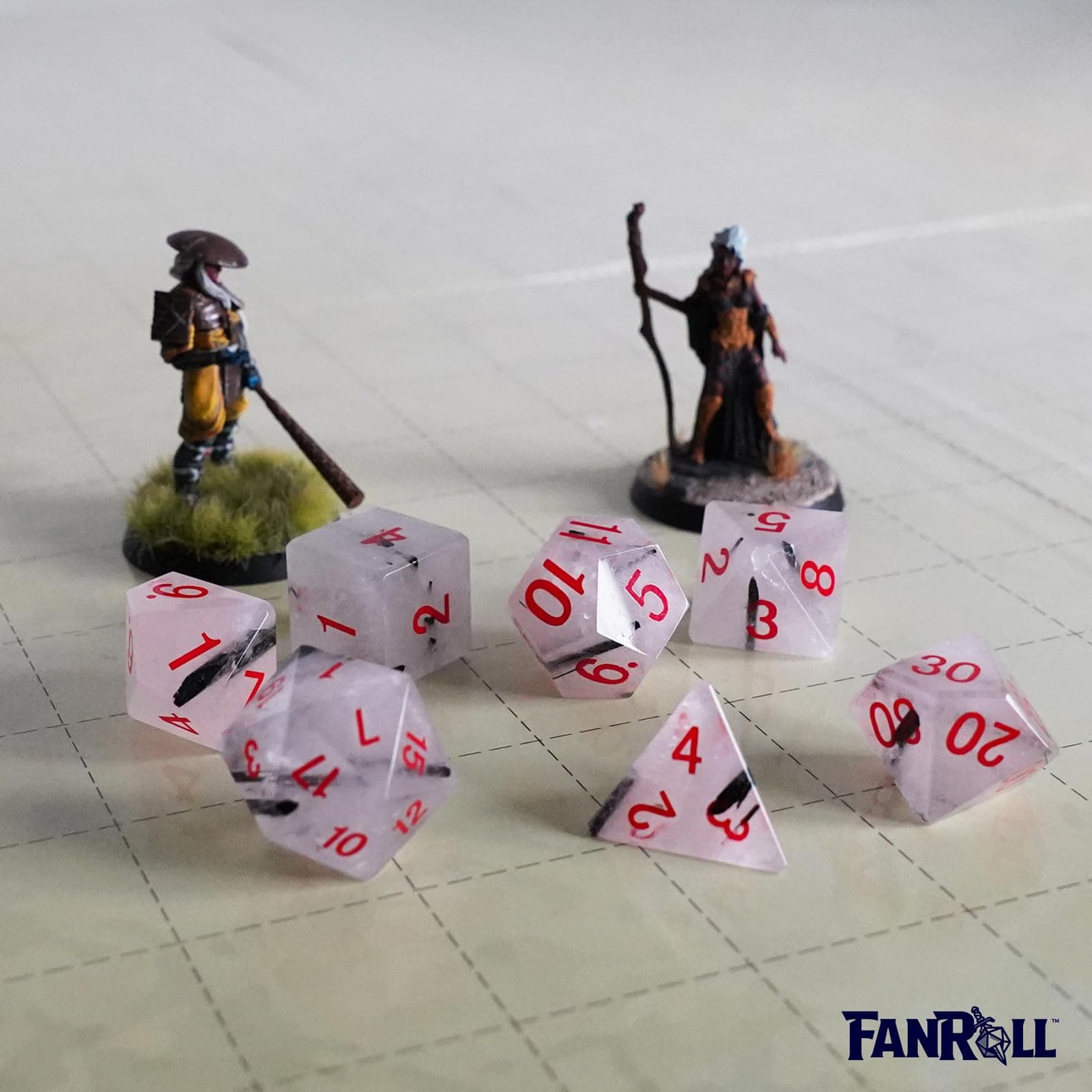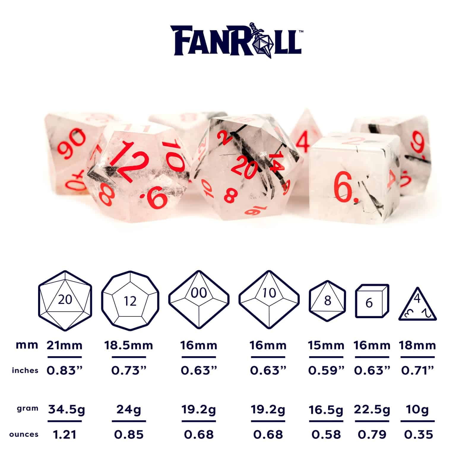 Set de Dados de Piedra FanRoll de Metallic Dice -Negro Cuarz