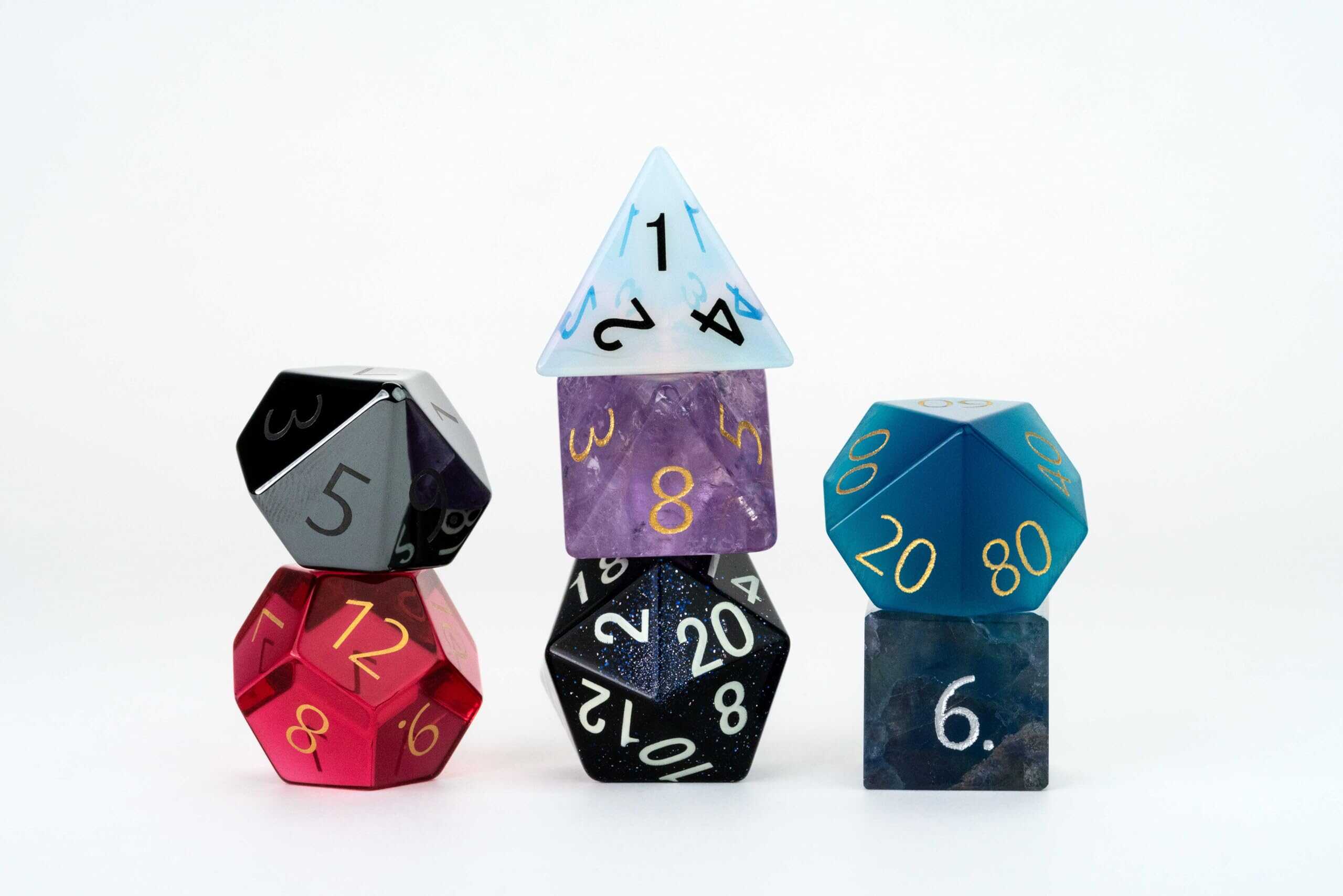 FanRoll se complace en presentar nuestra caja de misterio más premium al mercado. Hemos reunido un conjunto completo de 7 dados directamente de las Minas Enanas, pero no tuvimos tiempo de combinarlos. Por lo tanto, recibirás un conjunto aleatorio de dados de piedras preciosas que podrían incluir cualquier cosa, desde Turquesa hasta nuestro ultra-raro Vidrio Helado. Para aquellos que aman la experiencia de la caja misteriosa, este es el mayor toque de emoción. Descubre docenas de posibles piedras, desde nuestra Opalita más vendida hasta nuestra piedra premium de Amatista. ¡Las posibilidades incluyen Cuarzo Rosa, Arenisca Azul, Jaspe Imagen, Ojo de Gato, Turquesa, Cornalina, Ojo de Tigre, Hematita, Labradorita, Obsidiana, Coral Fosilizado, Fluorita Arcoíris, Lapislázuli, Piedra Imperial, Amazonita, Jade y más!
