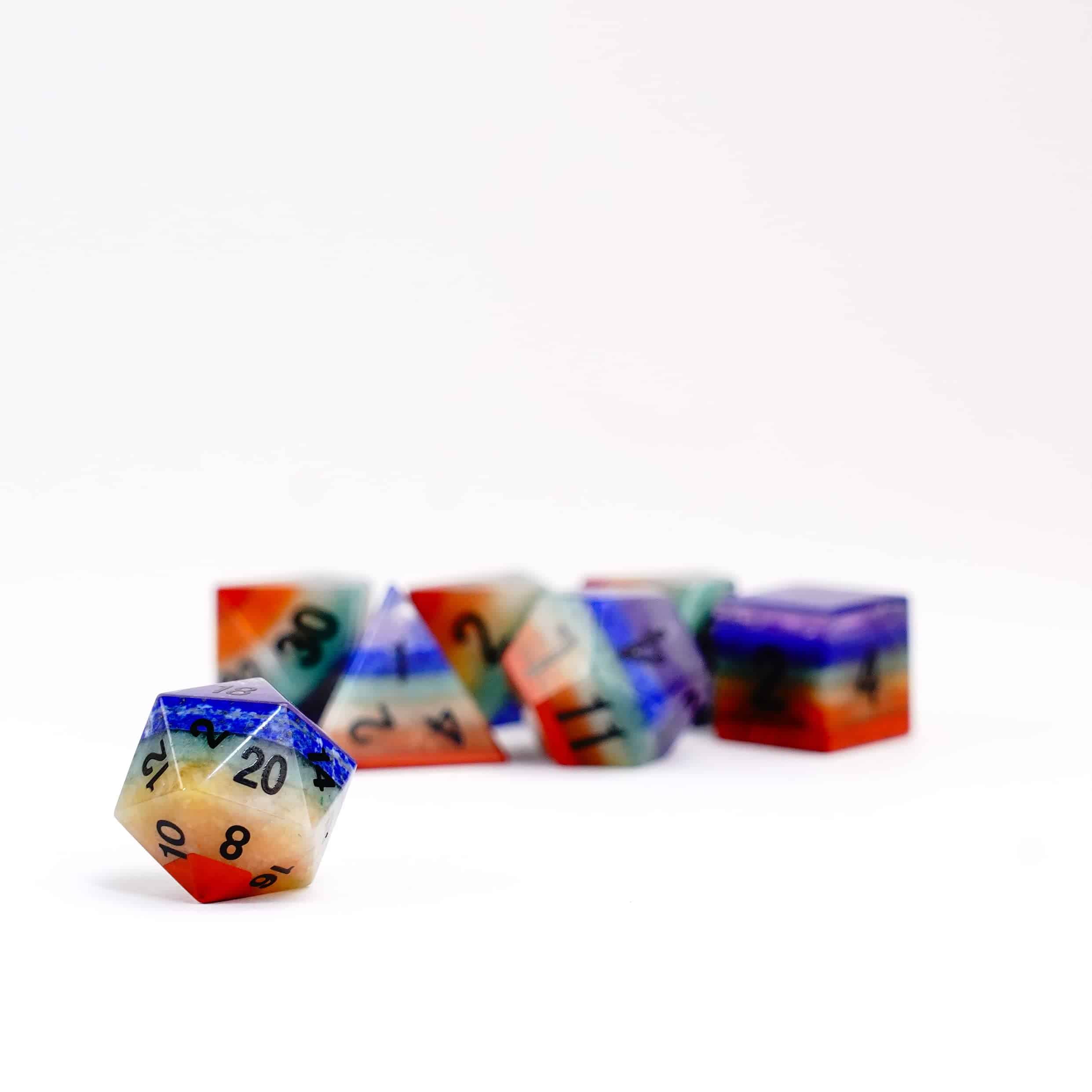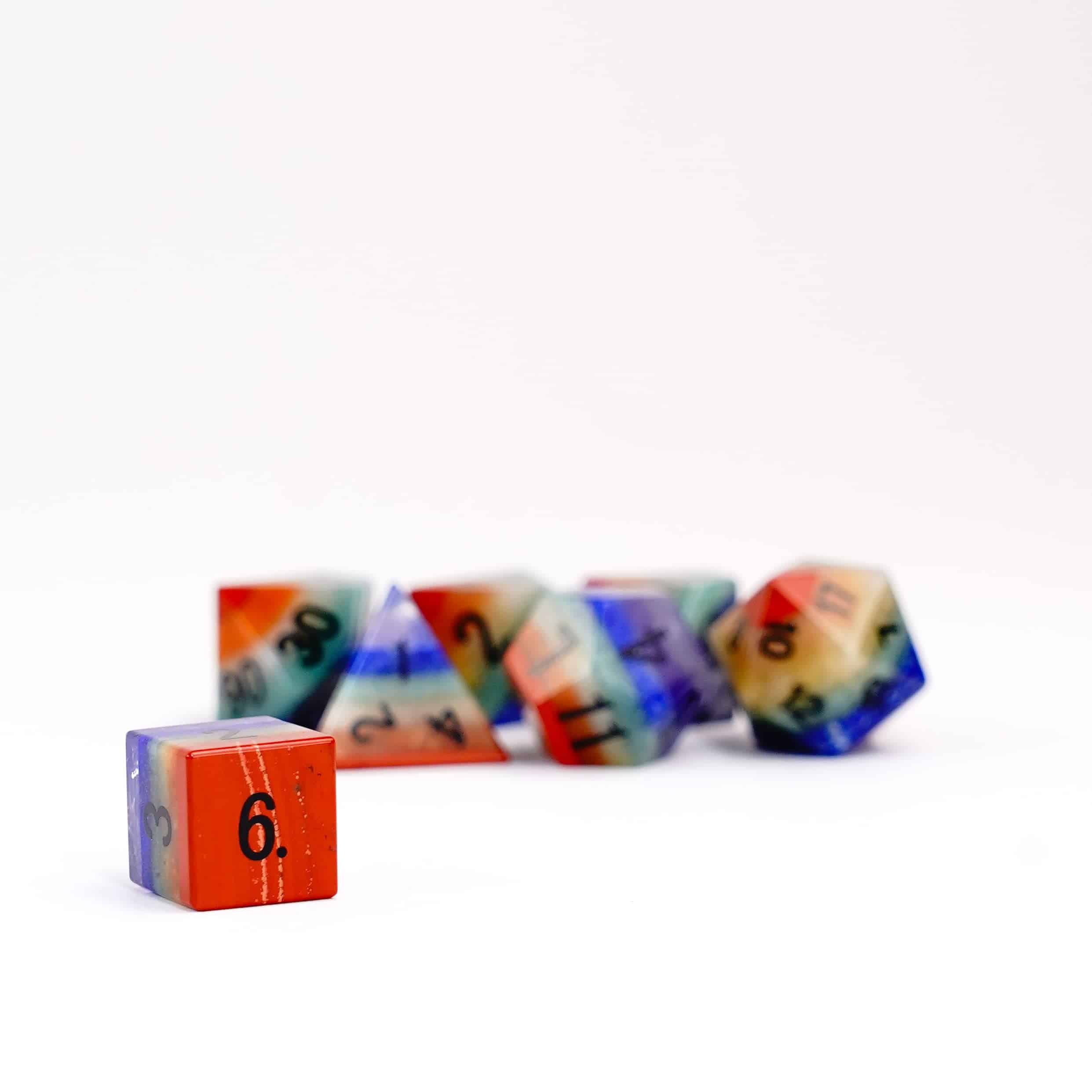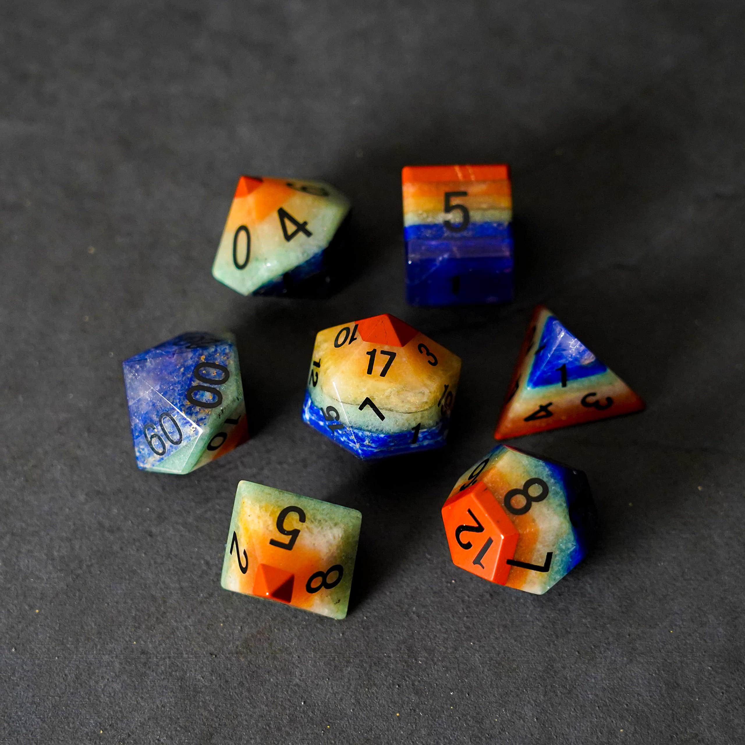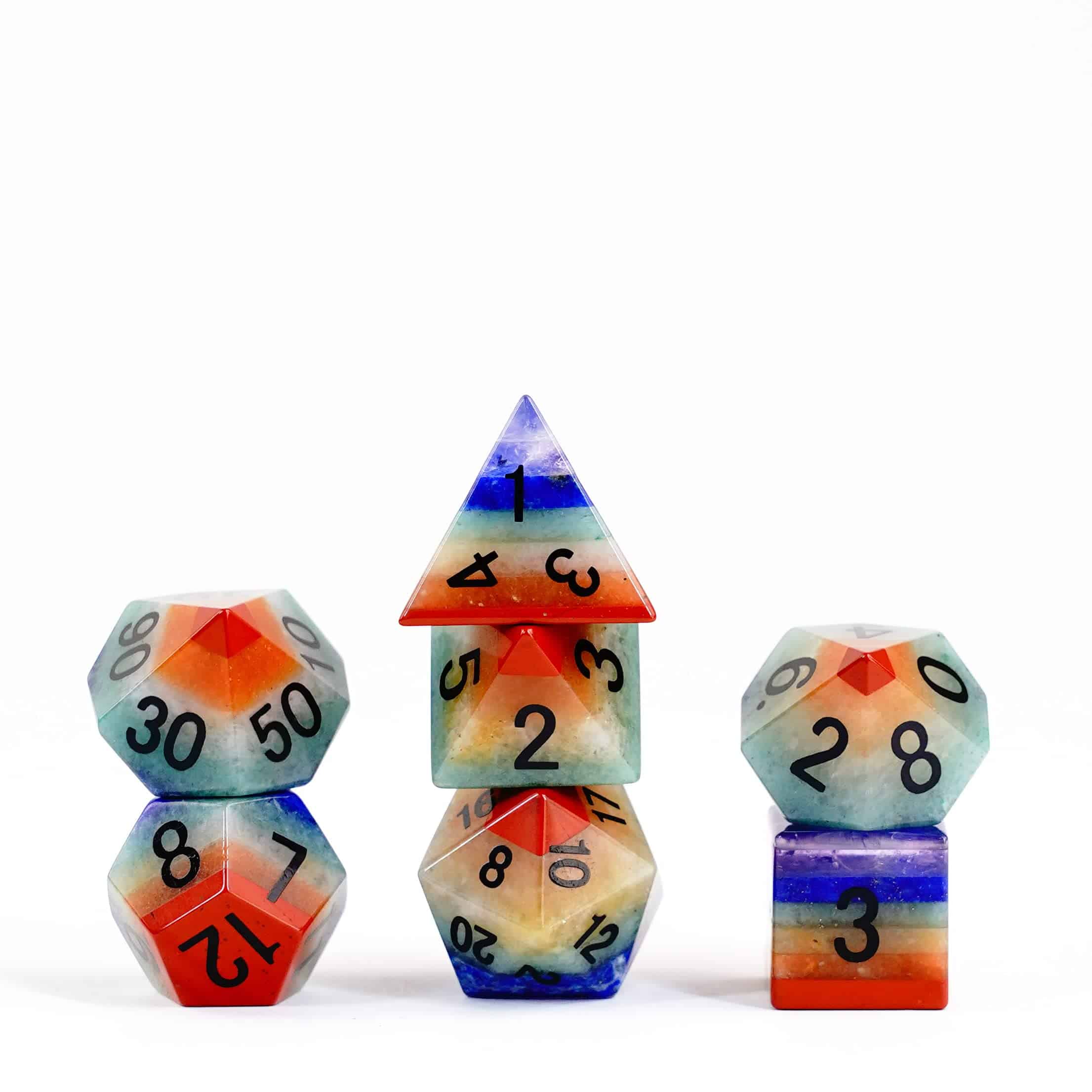 FanRoll de Metallic Dice Games es un set de dados de gemstone de alta calidad diseñado para juegos de rol como Dungeons and Dragons. Cada dado está tallado con precisión en capas de Chakra con números impresos para que puedas disfrutarlos durante toda una vida de juego. El peso de los dados es mayor en comparación con los dados tradicionales, lo que brinda una experiencia táctil única. Cada set es extraído y elaborado a mano con atención y precisión para garantizar la más alta calidad. Los dados se envuelven individualmente y se almacenan en un estuche protector para facilitar su transporte y protección. MDG se destaca en la fabricación de productos duraderos y de calidad con un toque personal y una garantía de satisfacción del 100%. No te conformes con menos, elige FanRoll de Metallic Dice Games para tus aventuras de juego.