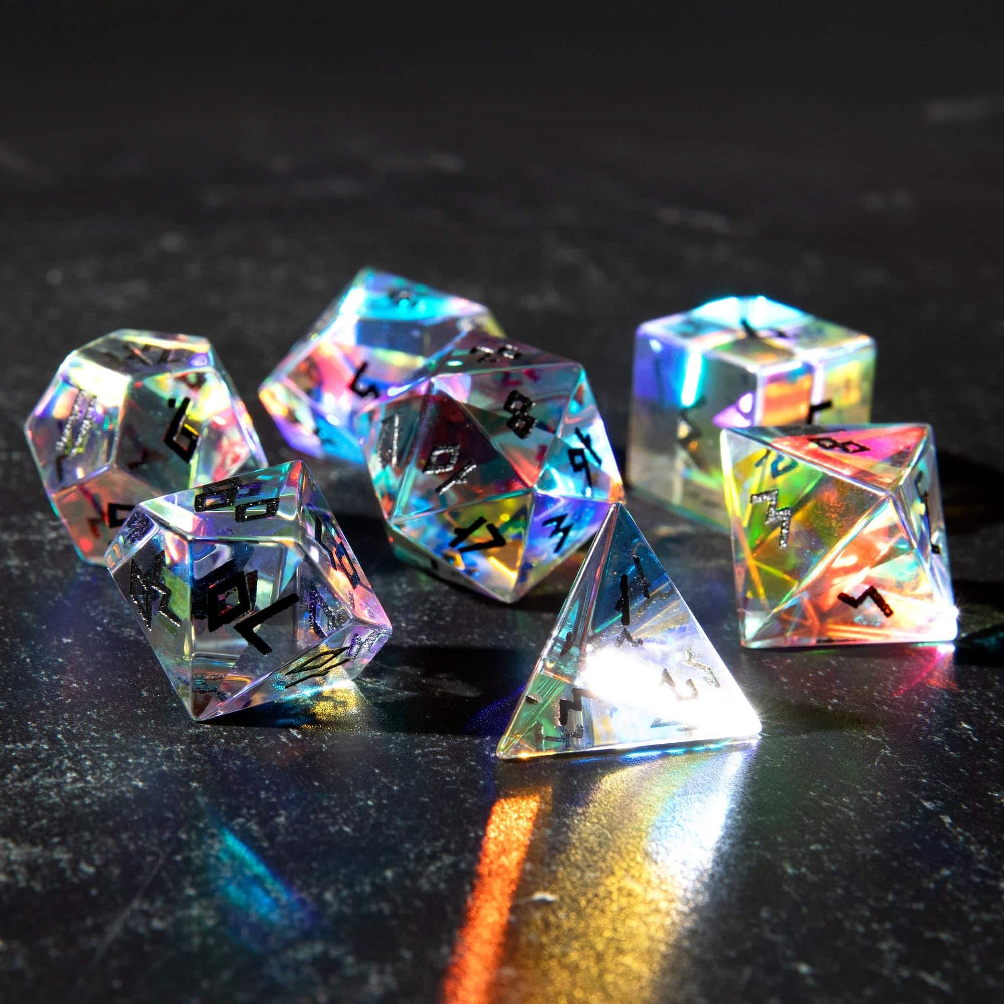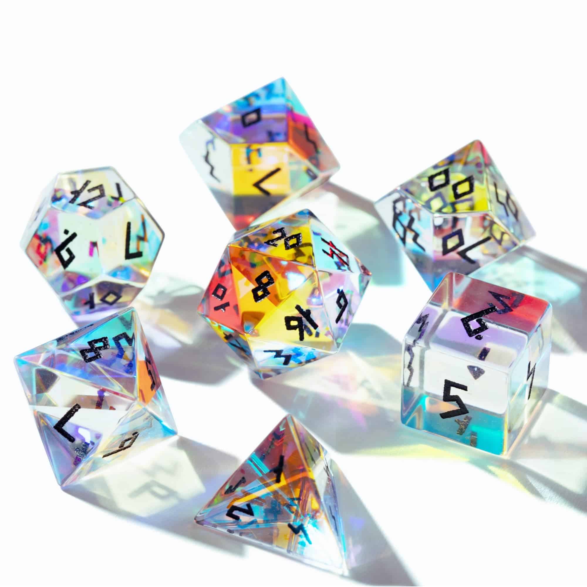 Set de Dados de Vidrio Prismático HEIMDALLR con Primera
