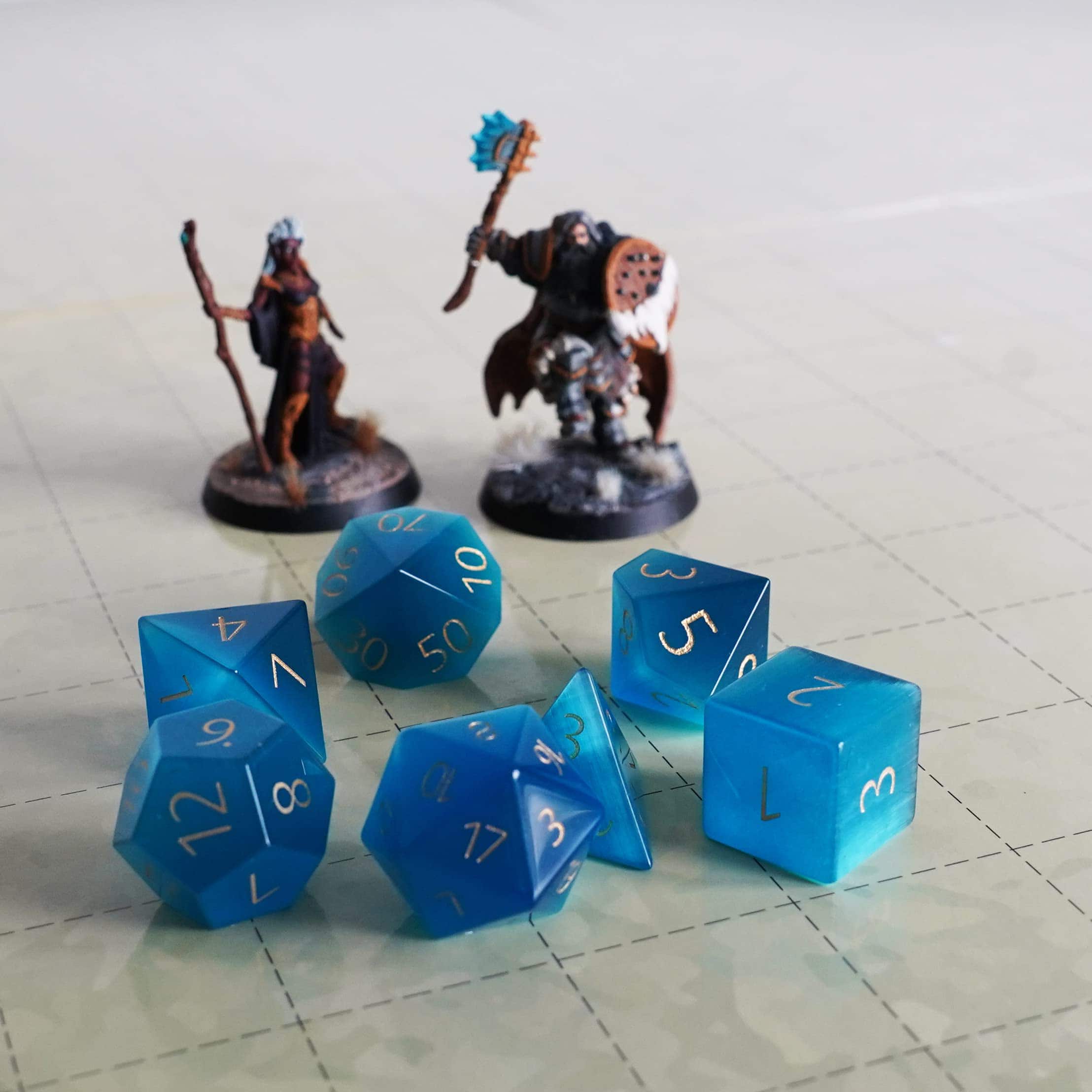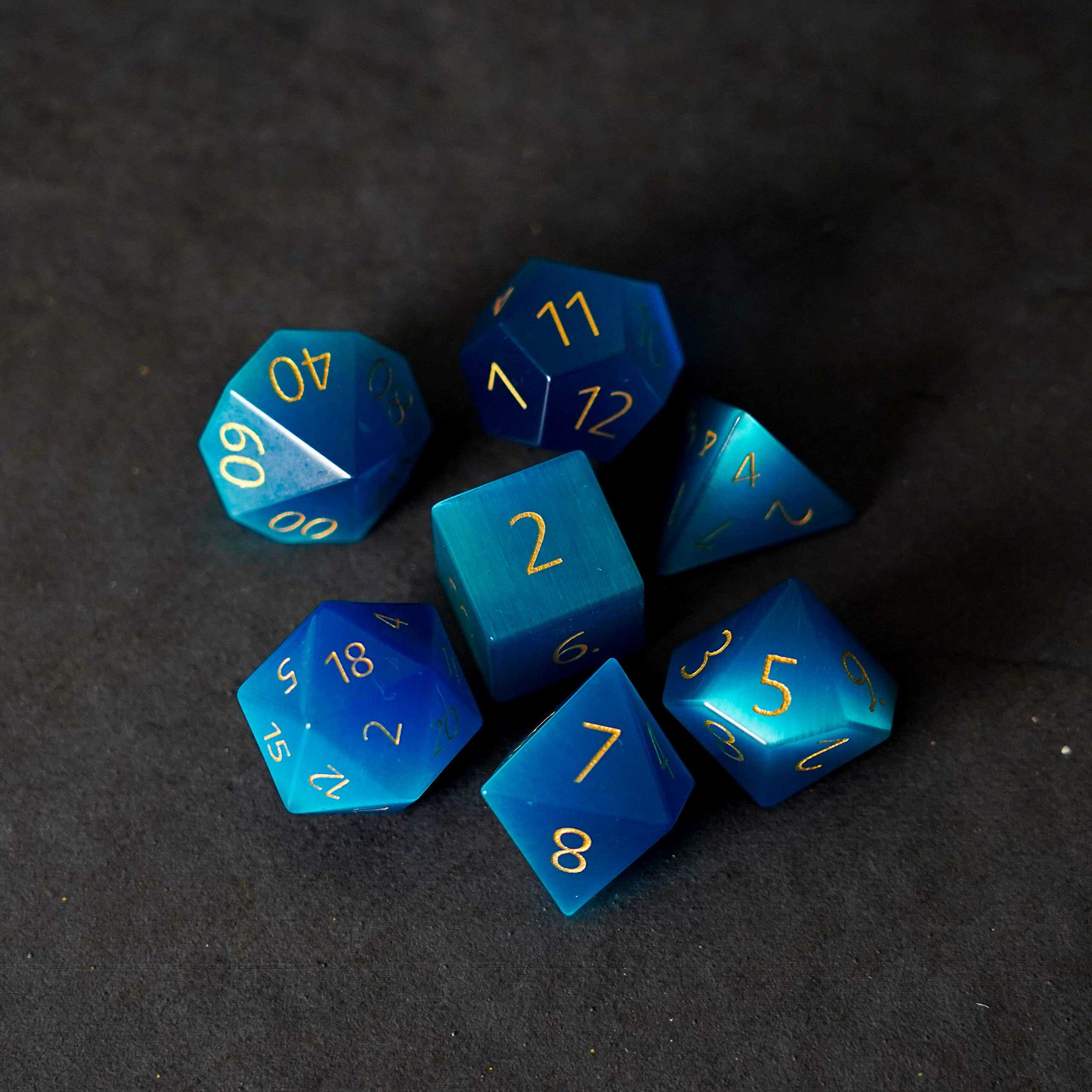 1. Nuestros dados de gema son inigualables. Tallados con precisión a partir de piedras preciosas de alta calidad, cada dado es una obra de arte con números impresos diseñados para un juego duradero.
